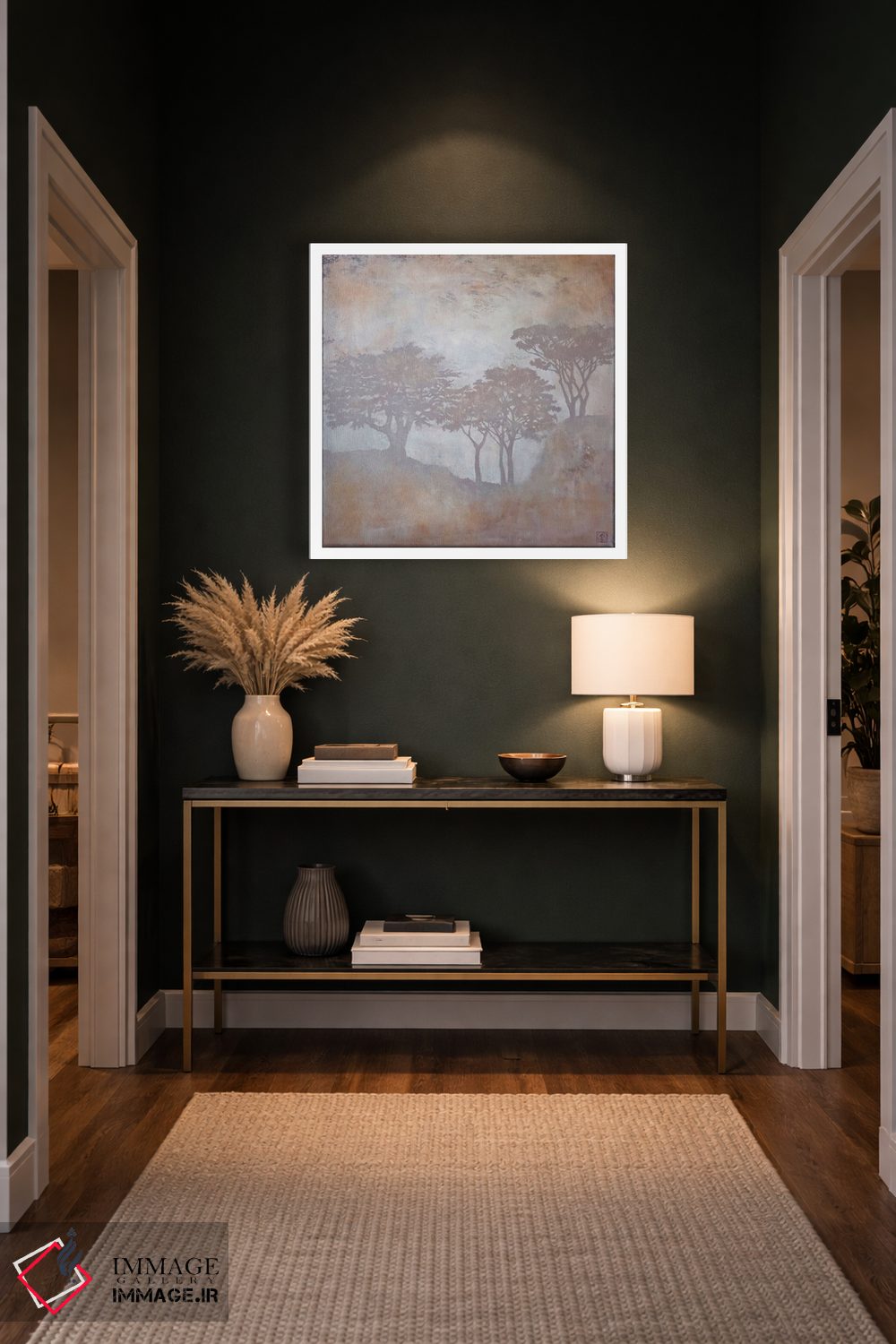 این تابلو اثرِ «کاتیا بِلینی» با حس معاصر، کنار رنگهای خنثی و مبلمان ساده خوب مینشیند؛ موضوعِ این اثر هم فضا را کامل میکند.