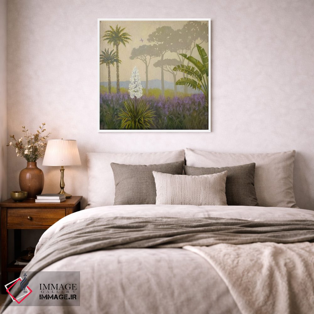 براساس پالت ترکیبی اثر، قاب بلوط روشن (چوبی) پیشنهاد اول است و استخوانی ملایم مکمل. برای سفارشهای پروژهای با ابعاد و قابهای اختصاصی با ایماژ در تماس باشید.