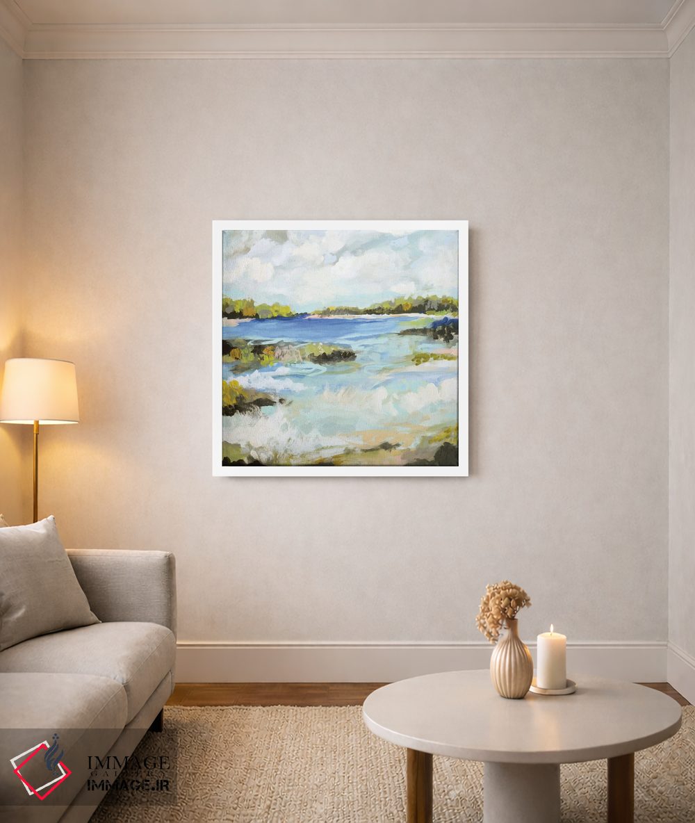 براساس پالت ترکیبی اثر، قاب بلوط روشن (چوبی) پیشنهاد اول است و استخوانی ملایم مکمل. برای سفارشهای پروژهای با ابعاد و قابهای اختصاصی با ایماژ در تماس باشید.
