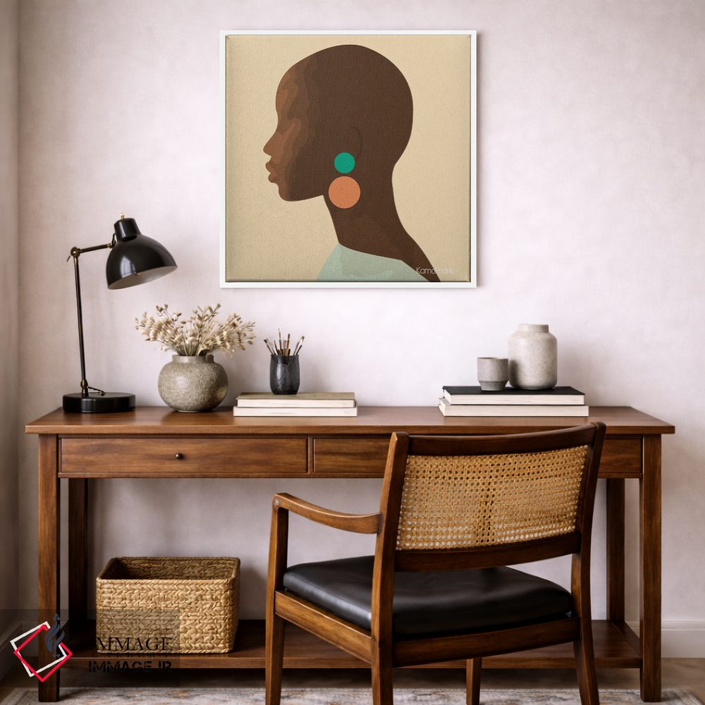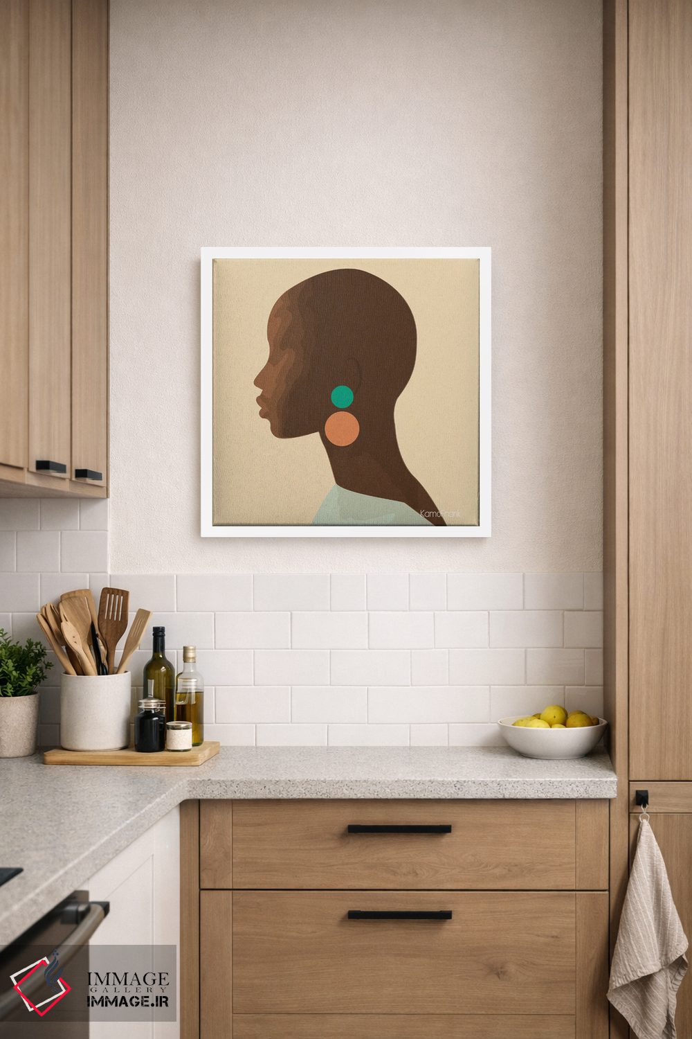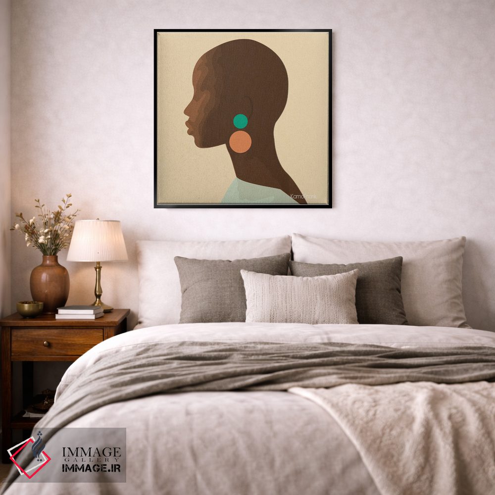 براساس پالت ترکیبی اثر، قاب بلوط روشن (چوبی) پیشنهاد اول است و استخوانی ملایم مکمل. برای سفارشهای پروژهای با ابعاد و قابهای اختصاصی با ایماژ در تماس باشید.