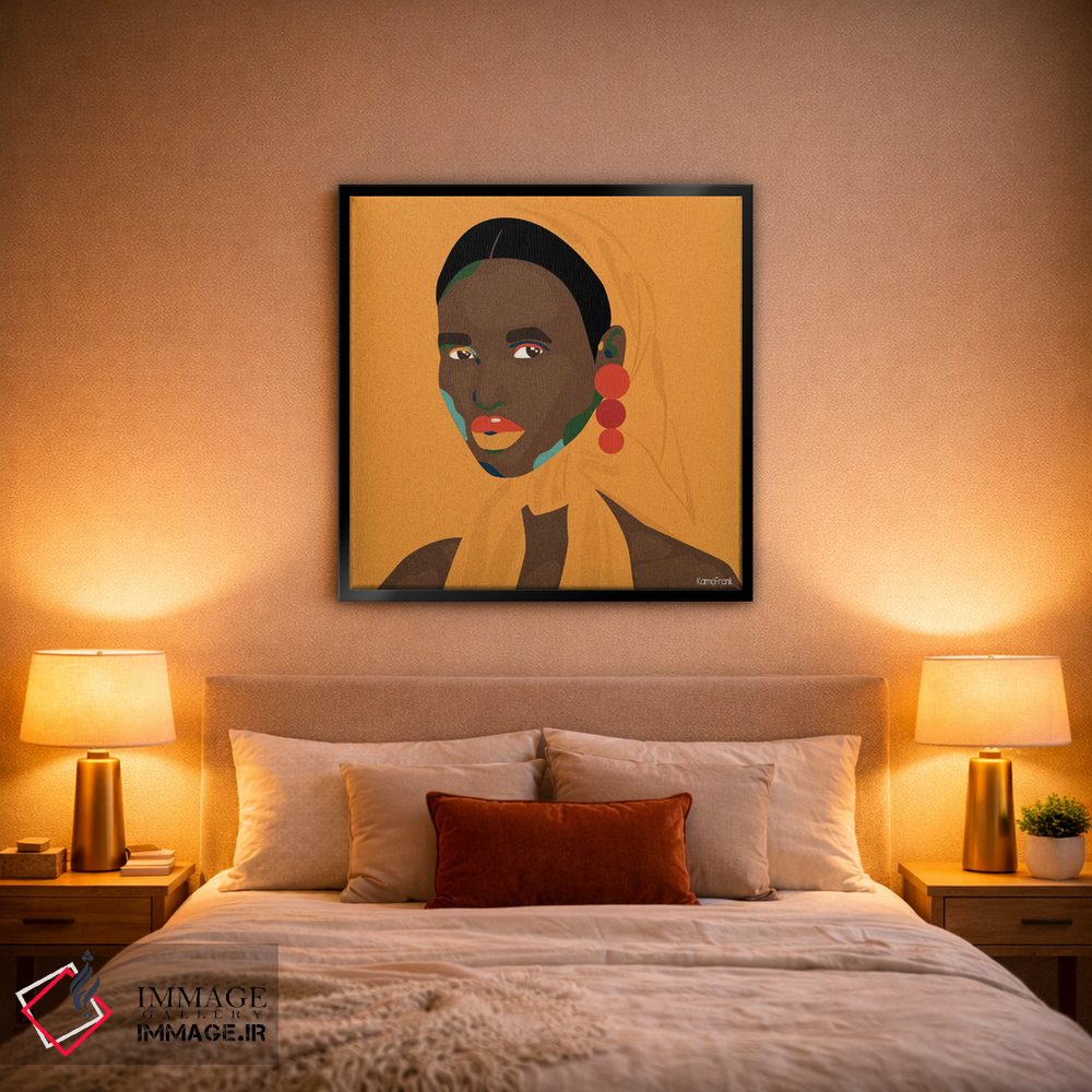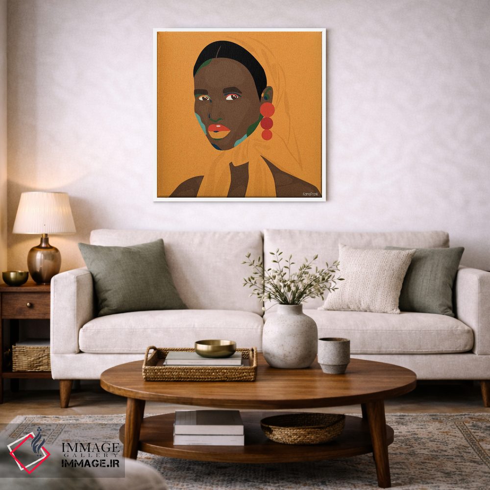براساس پالت ترکیبی اثر، قاب تیک گرم (چوبی) پیشنهاد اول است و مشکی مات (فریم متوسط) مکمل. برای سفارشهای پروژهای با ابعاد و قابهای اختصاصی با ایماژ در تماس باشید.