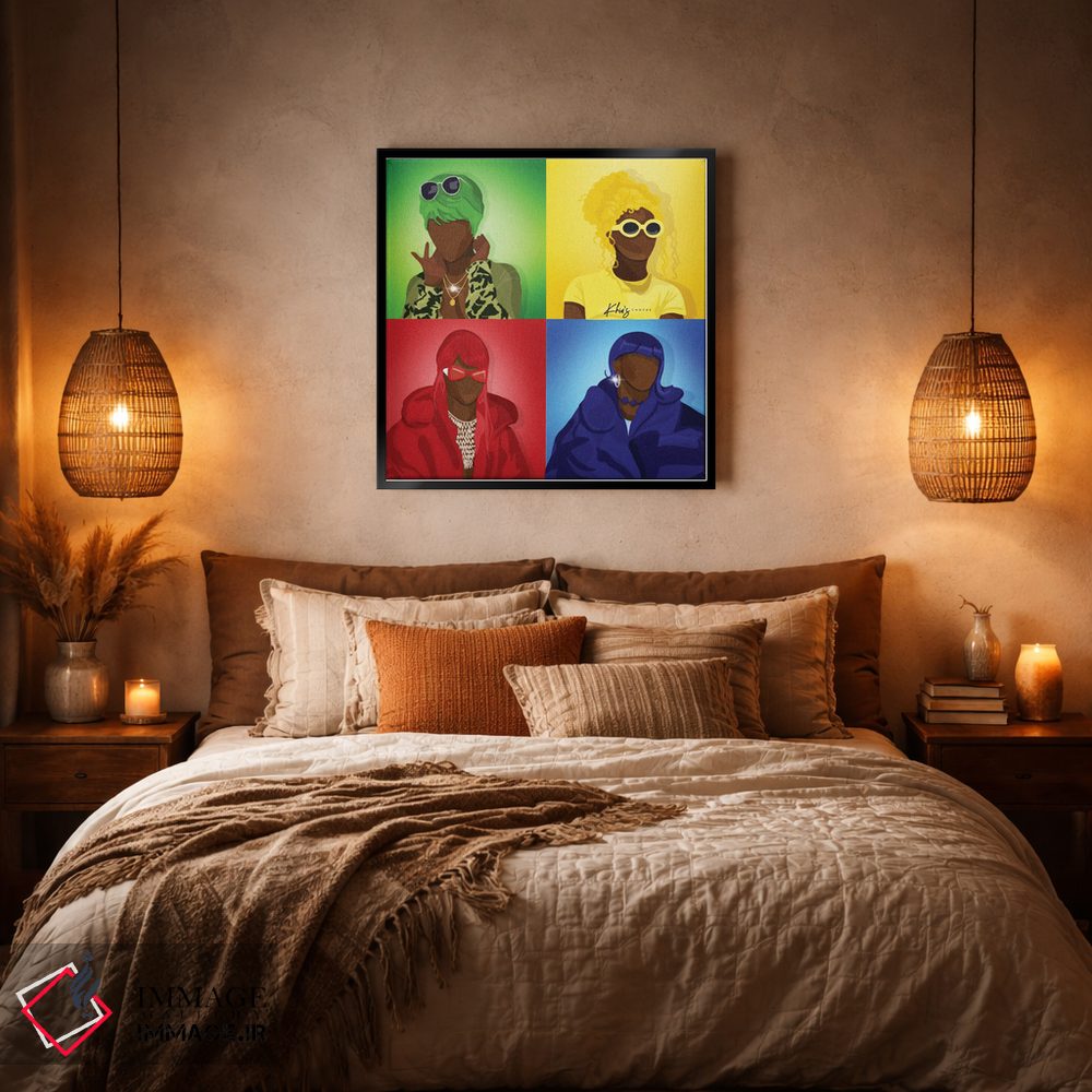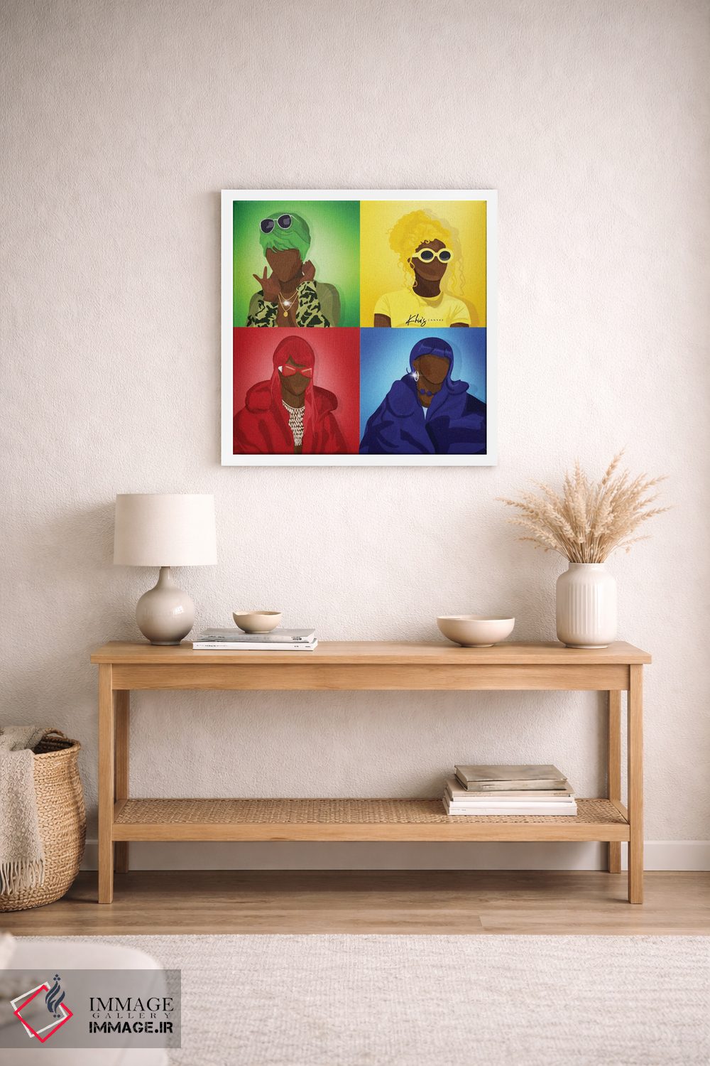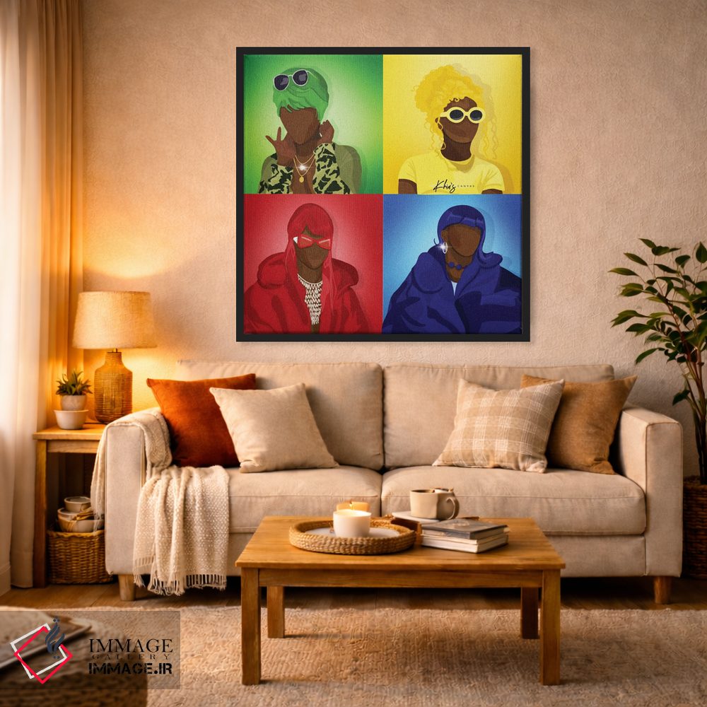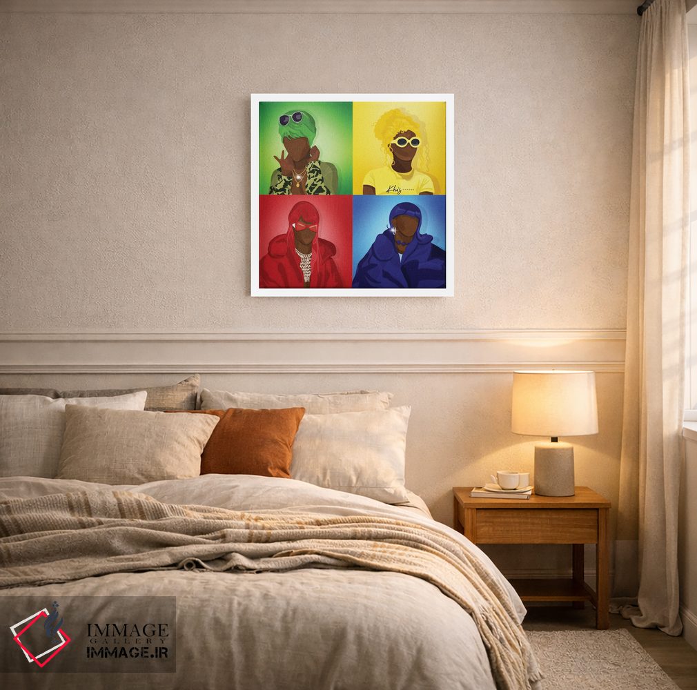 براساس پالت ترکیبی اثر، قاب تیک گرم (چوبی) پیشنهاد اول است و مشکی مات (فریم متوسط) مکمل. برای سفارشهای پروژهای با ابعاد و قابهای اختصاصی با ایماژ در تماس باشید.