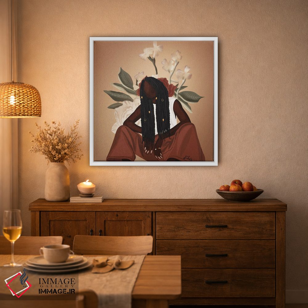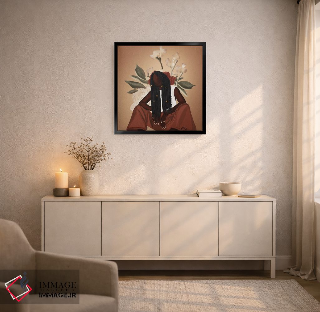 براساس پالت گرم اثر، قاب تیک گرم (چوبی) پیشنهاد اول است و مشکی مات (فریم متوسط) مکمل. برای سفارشهای پروژهای با ابعاد و قابهای اختصاصی با ایماژ در تماس باشید.