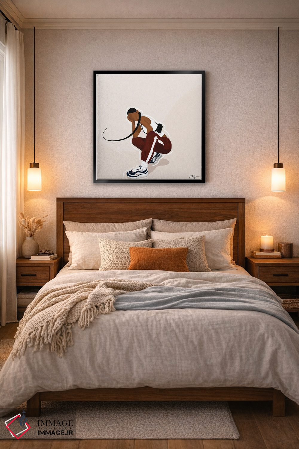 براساس پالت گرم اثر، قاب تیک گرم (چوبی) پیشنهاد اول است و مشکی مات (فریم متوسط) مکمل. برای سفارشهای پروژهای با ابعاد و قابهای اختصاصی با ایماژ در تماس باشید.