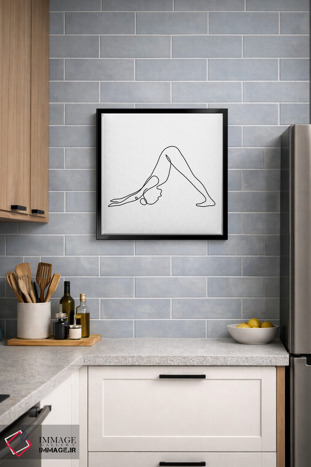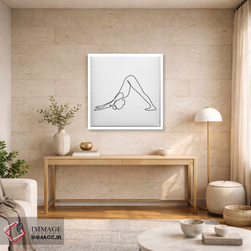 «ژست سگ سرپایین یوگا (مربع)» اثرِ «باور کی» با رویکرد هنری، یک انتخاب شیک و تمیز برای دیوارهایی است که دنبال نظم و کنتراست پُرانرژی.