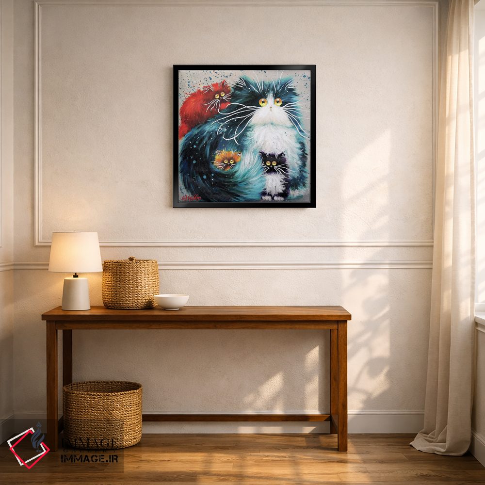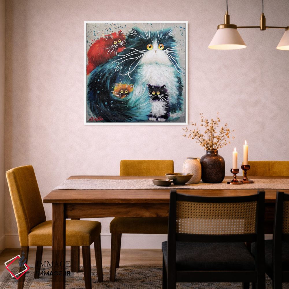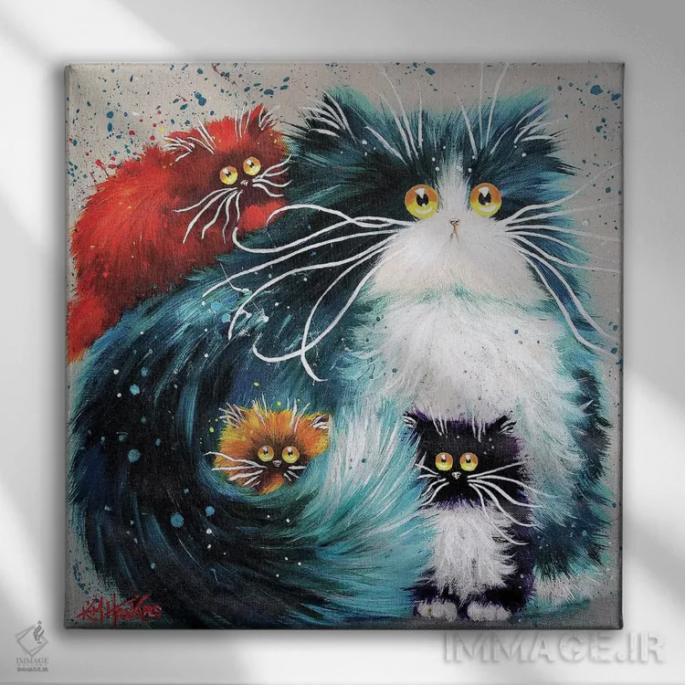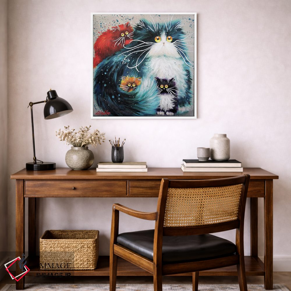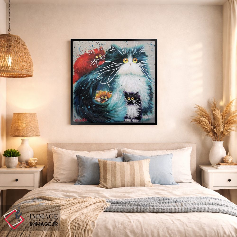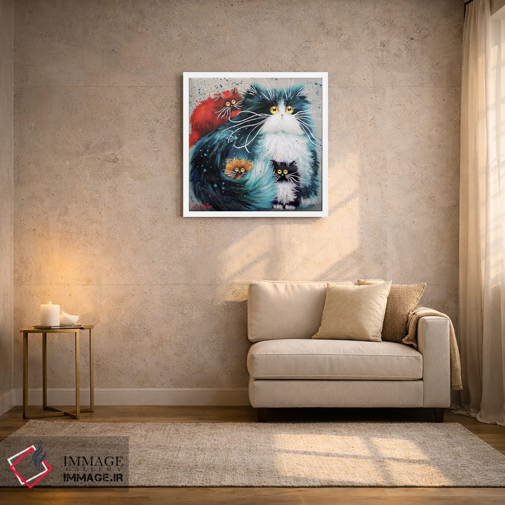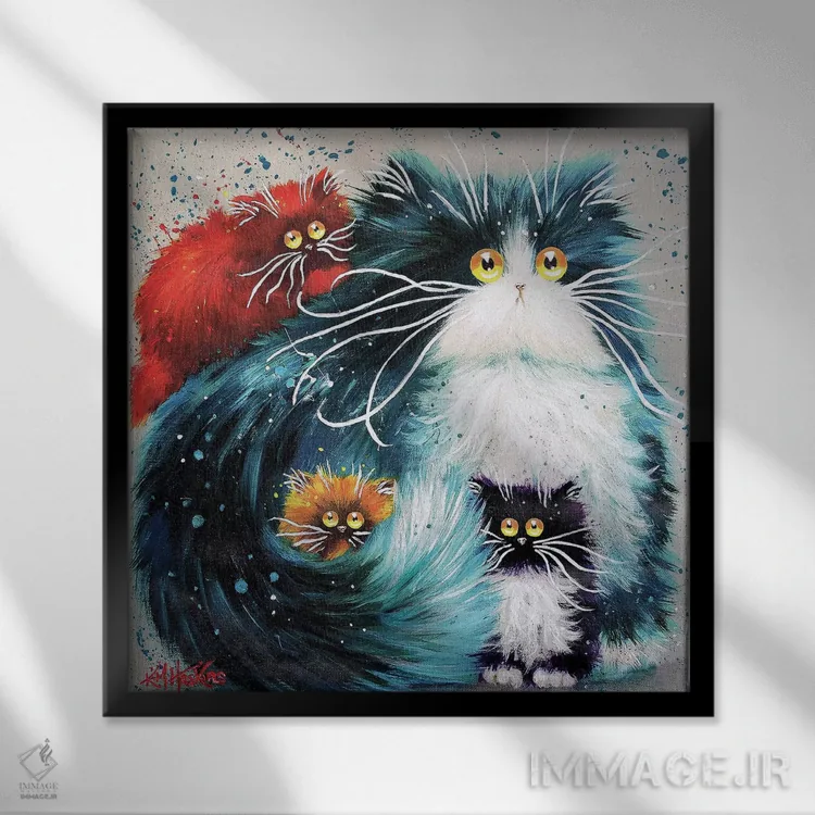 اگر میخواهید دیوار کمی سرزندگیِ محترمانه داشته باشد، «والدگری گربهای (ترکیب parent + purr)» اثرِ «کیم هاسکینز» یک لبخند ریز به چیدمان میدهد، برای دیوار کنار میز کار گزینهٔ مناسبیست. هر بار نگاهش میکنید، یک جزئیات تازه به چشم میآید.