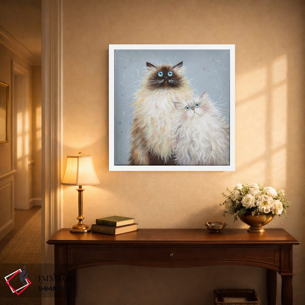 «سابرینا و سوفی» اثرِ «کیم هاسکینز» از آن کارهاییست که به فضا، گرمیِ ملایم اضافه میکند؛ برای اتاق کودک (بدون لحن کودکانه) انتخاب خوبیست. هر بار نگاهش میکنید، یک جزئیات تازه به چشم میآید.