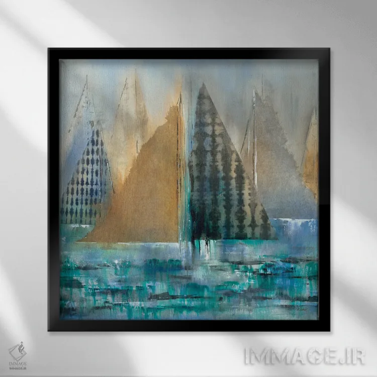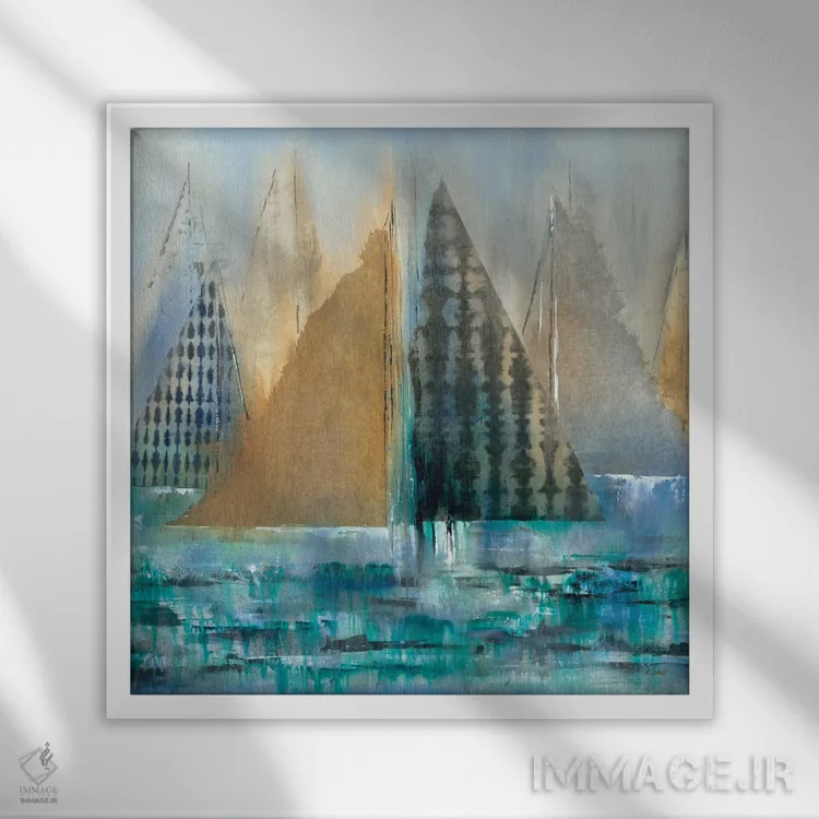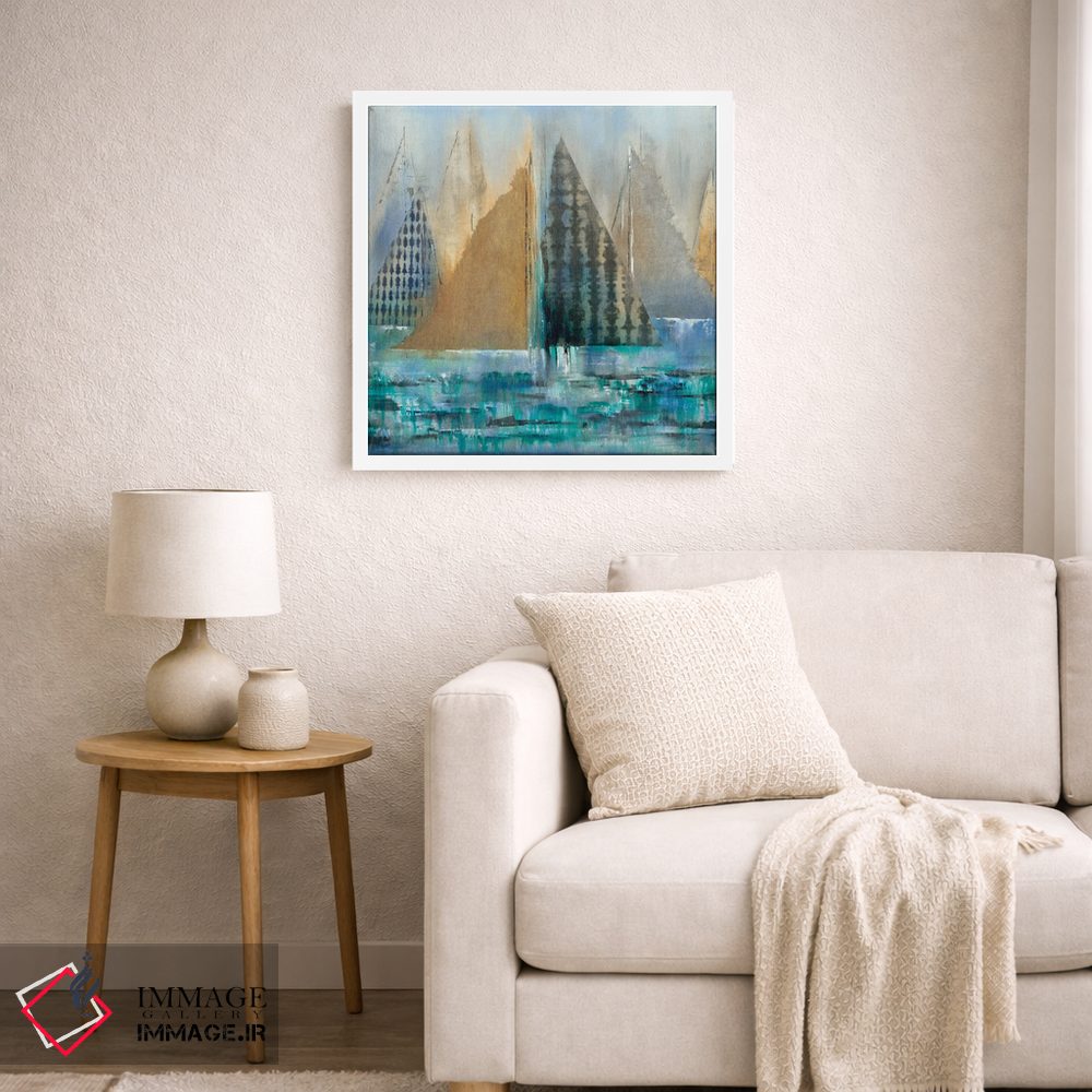 براساس پالت ترکیبی اثر، قاب تیک گرم (چوبی) پیشنهاد اول است و مشکی مات (فریم متوسط) مکمل. برای سفارشهای پروژهای با ابعاد و قابهای اختصاصی با ایماژ در تماس باشید.