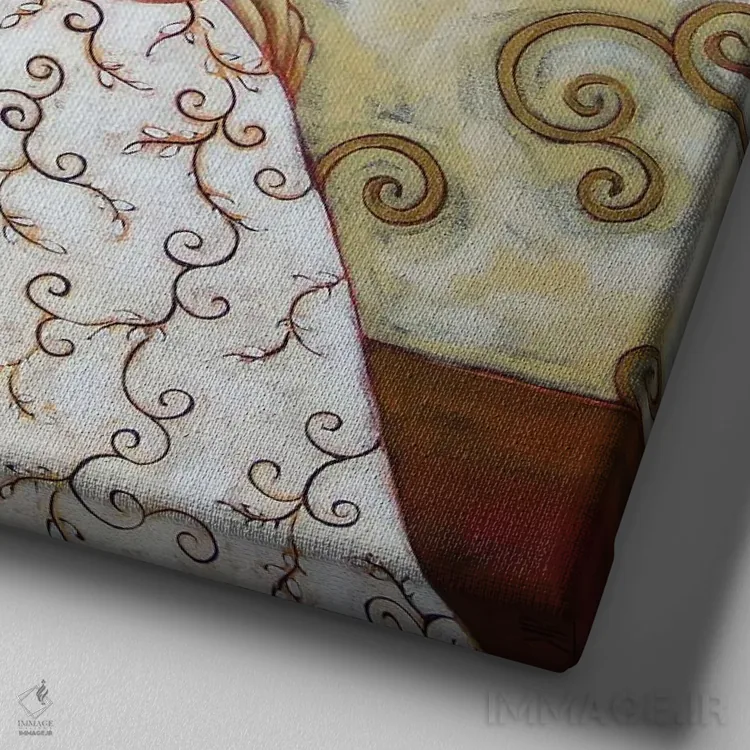 تابلو دکوراتیو زن با منظره زمستانی و گل رز اثر کارن ریگر - نمای نزدیک بافت بوم