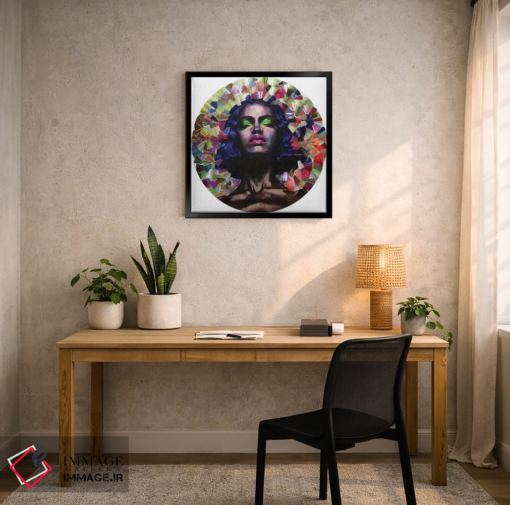 براساس پالت ترکیبی اثر، قاب تیک گرم (چوبی) پیشنهاد اول است و مشکی مات (فریم متوسط) مکمل. برای سفارشهای پروژهای با ابعاد و قابهای اختصاصی با ایماژ در تماس باشید.