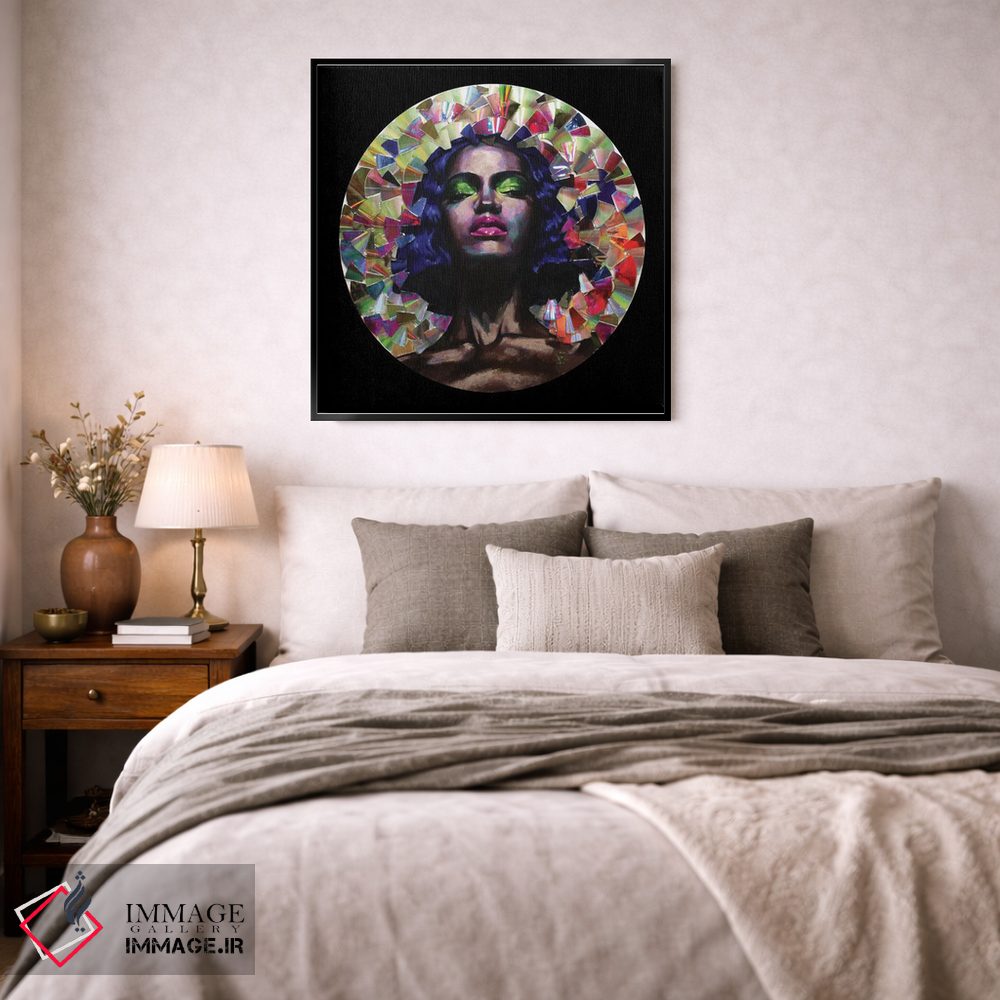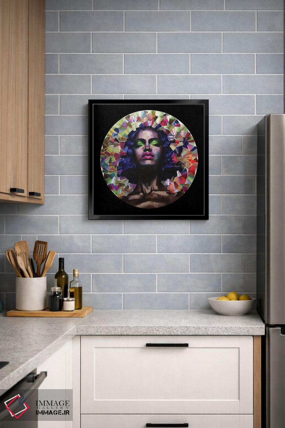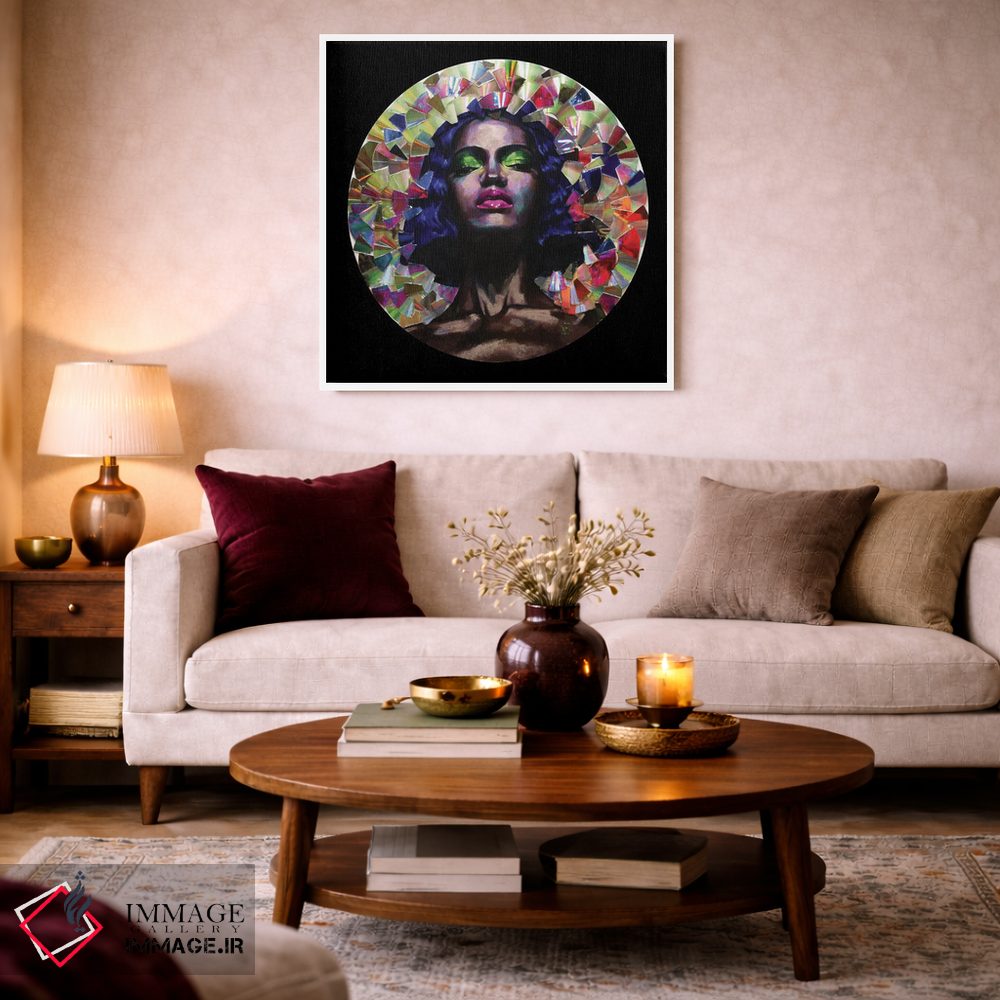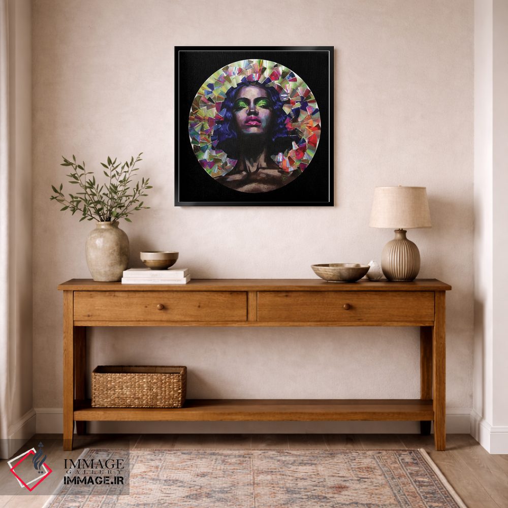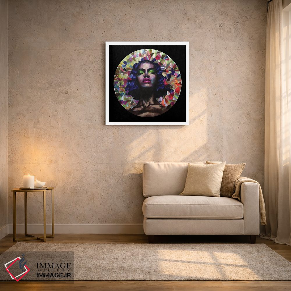 براساس پالت ترکیبی اثر، قاب تیک گرم (چوبی) پیشنهاد اول است و مشکی مات (فریم متوسط) مکمل. برای سفارشهای پروژهای با ابعاد و قابهای اختصاصی با ایماژ در تماس باشید.