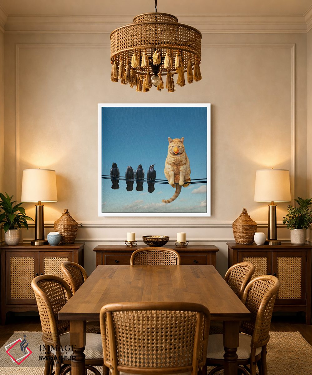 تابلو دکوراتیو گربه باهوش اثر لوند روزر - نمای روبه‌رو روی دیوار