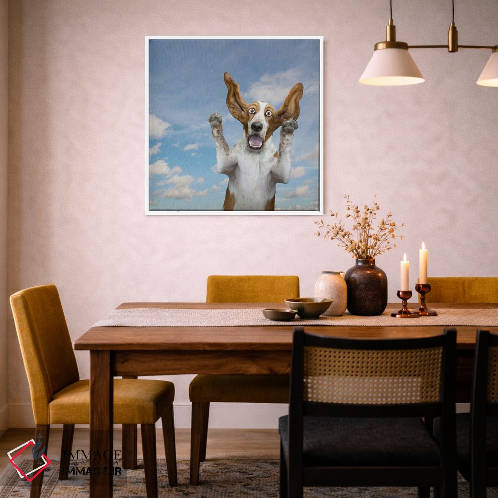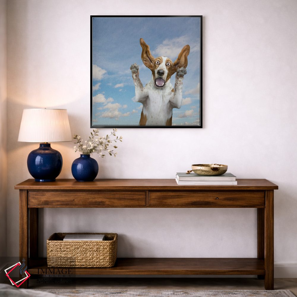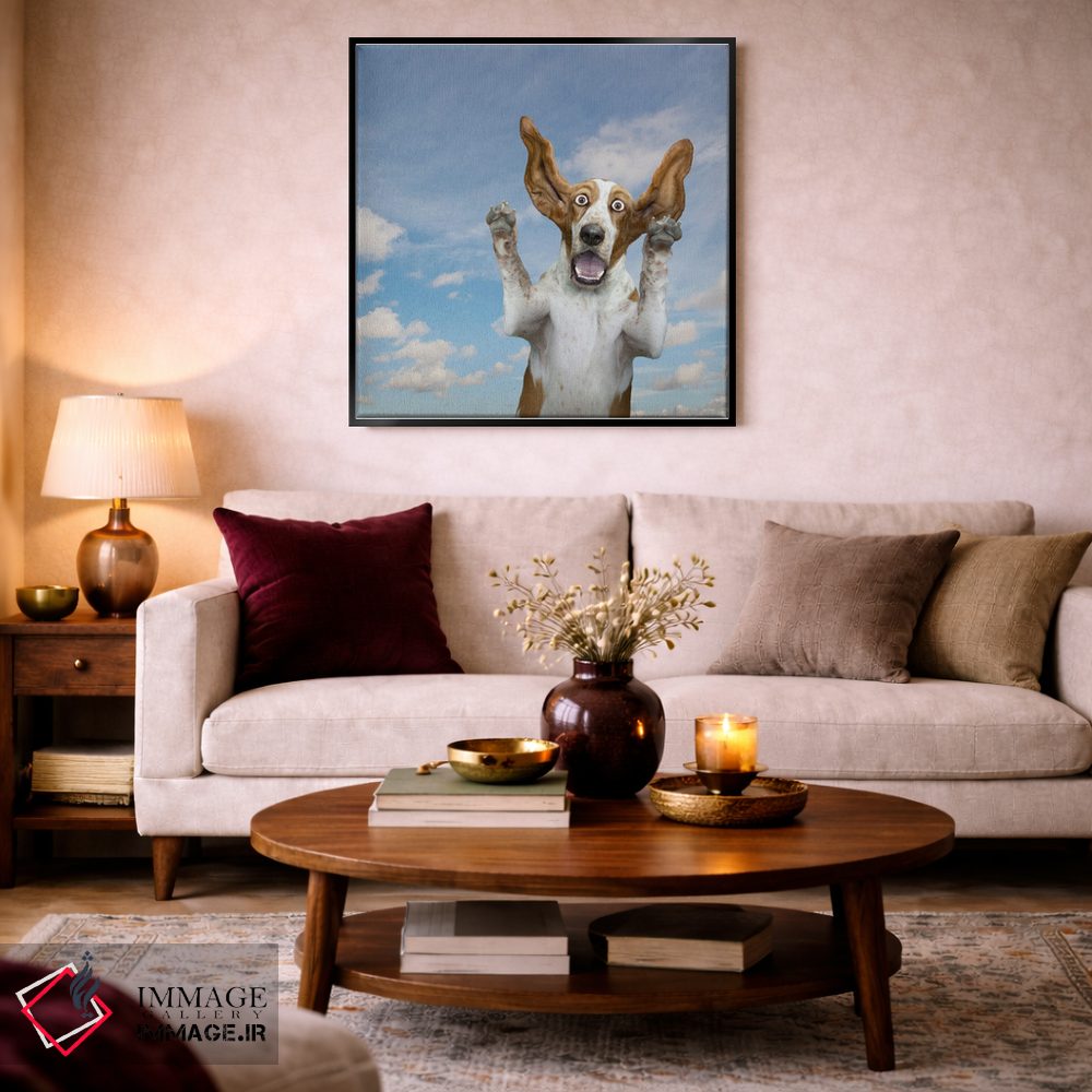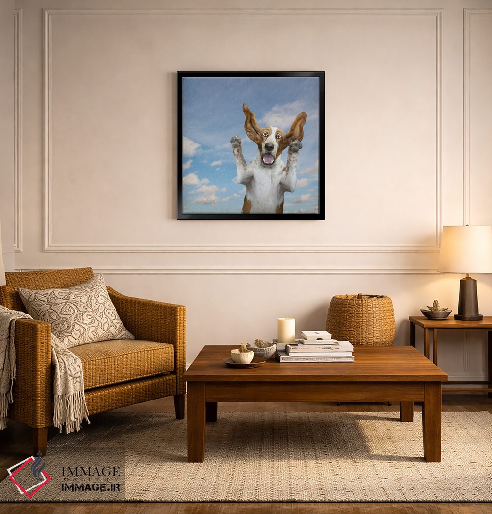 برای دیوارهای ساده، «شگفتی سگ باسِت هاوند» اثرِ «لوند روزر» گرما و شخصیت به فضا اضافه میکند؛ برای دیوار کنار میز کار انتخابی خوشسلیقه است. به دیوار، قصه میدهد—اما قصهای آرام و شیک.