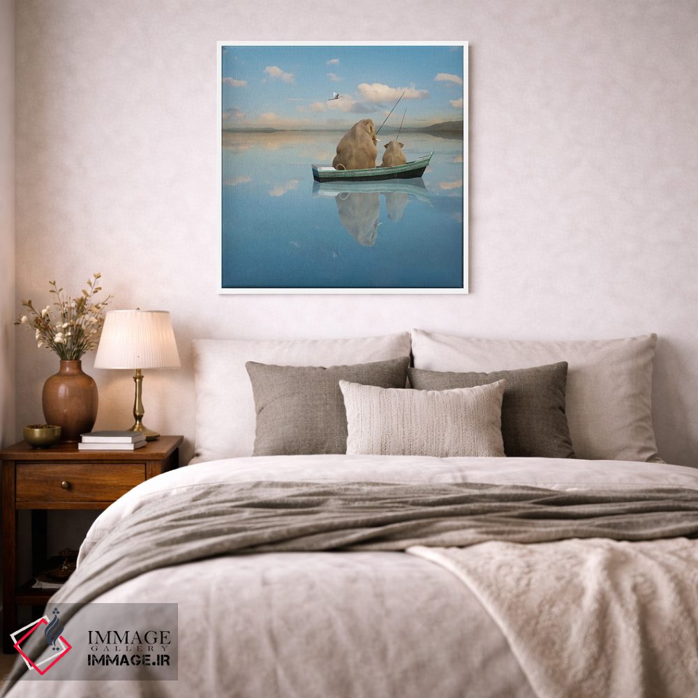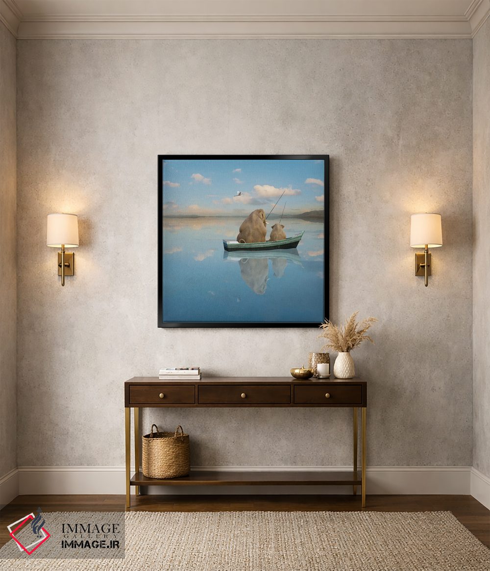 اگر میخواهید دیوار کمی سرزندگیِ محترمانه داشته باشد، «تفریح پستاندار بزرگ» اثرِ «لوند روزر» بدون کودکانه شدن، بازیگوش و خوشپرداخت میماند، برای راهروها و ورودیهای گرم گزینهٔ مناسبیست. با قاب چوبی یا مشکی، حس مرتبتری پیدا میکند.