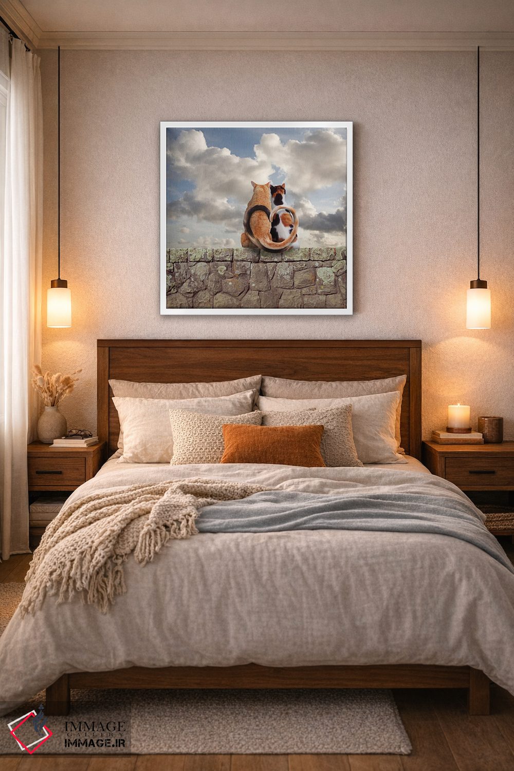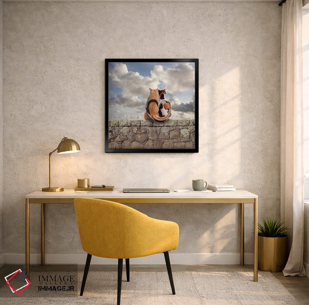 «عشق گربهای کامل (بازی با واژه purr)» اثرِ «لوند روزر» با نگاه عکاسانه به این اثر، حسِ حضور در فضا را زنده میکند؛ انتخابی مطمئن برای دیوارهای آرام و مینیمال.