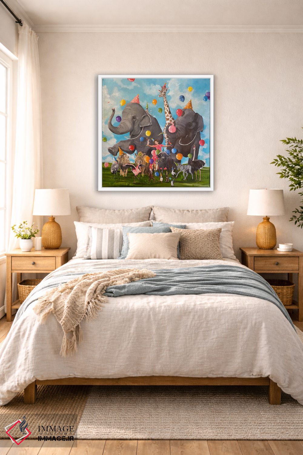 بوم گالری ایماژ نسخهی چیدماناتیوِ سطحبالا از یک اثر هنری است؛ روی کنواس سفیدِ یکدست و بدون اسید با اجرای چاپ هنری جیکلی (Giclée) برای آرتپرینتهای جدی با جوهرهای آرشیویِ حرفهای برای لایههای رنگی خواناتر، رنگها روی دیوار متعادلتر و سایهها جزئیتر دیده میشوند. تابلو پس از آمادهسازی روی کلاف کشیده میشود و نصب آن ساده و بیدردسر است.