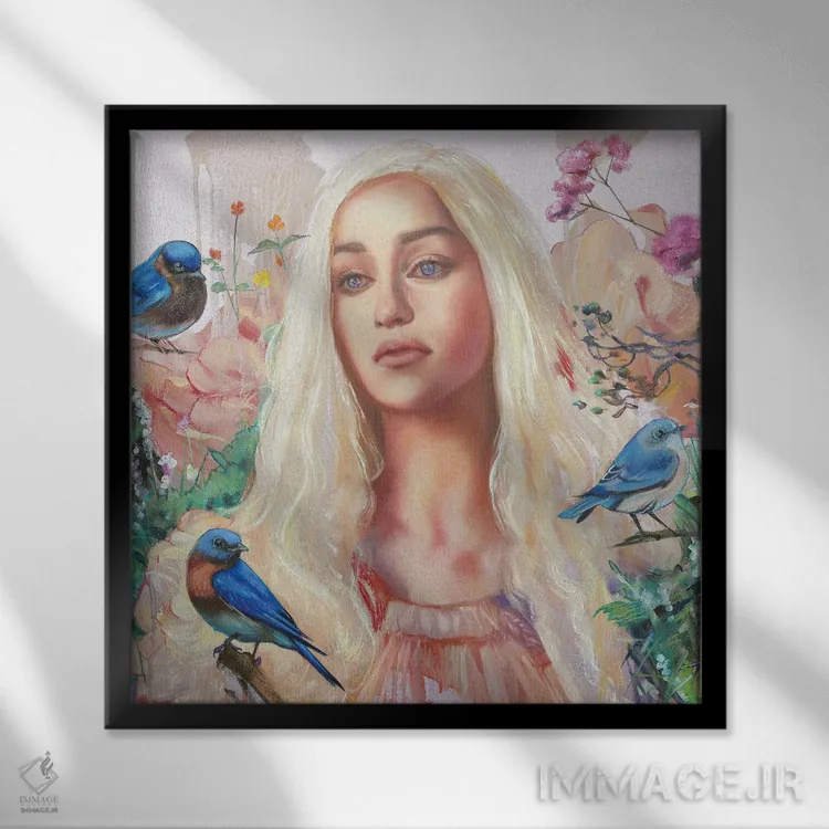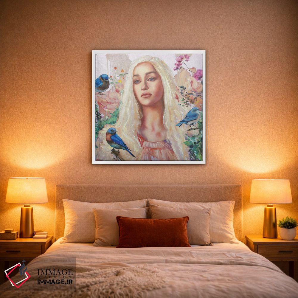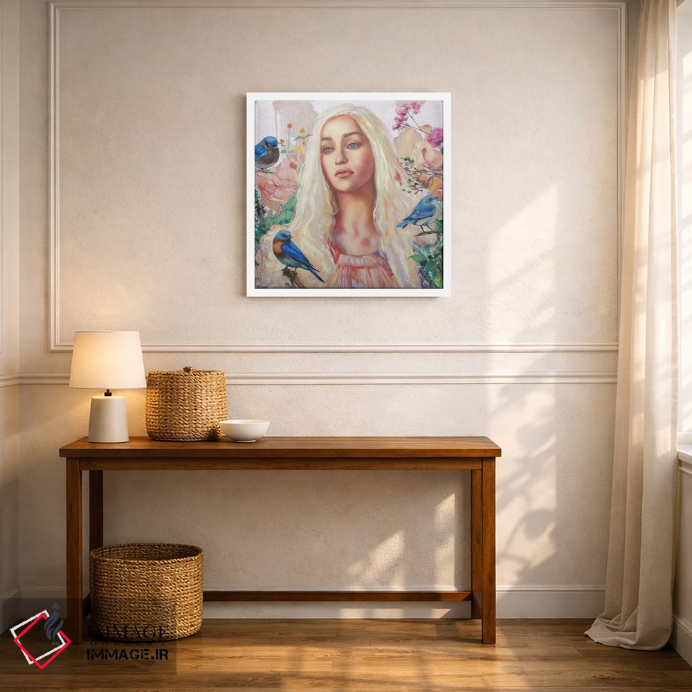 «خالسی (شخصیت سریال بازی تاجوتخت)» اثرِ «لیوبا برکنر» از آن کارهاییست که در کنار رنگهای خنثی، تضاد دلچسبی میسازد؛ برای خانههایی با چوب و پارچههای گرم انتخاب خوبیست. به دیوار، قصه میدهد—اما قصهای آرام و شیک.