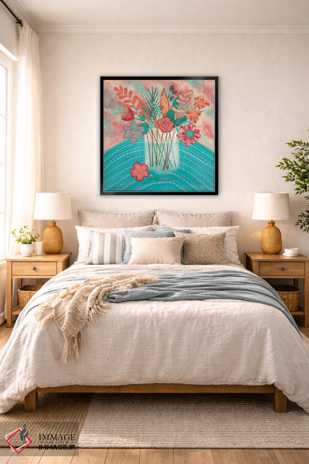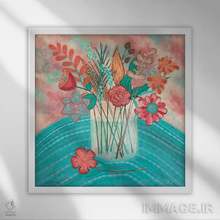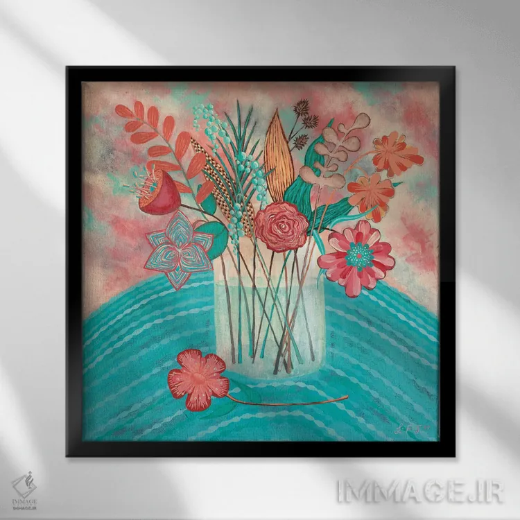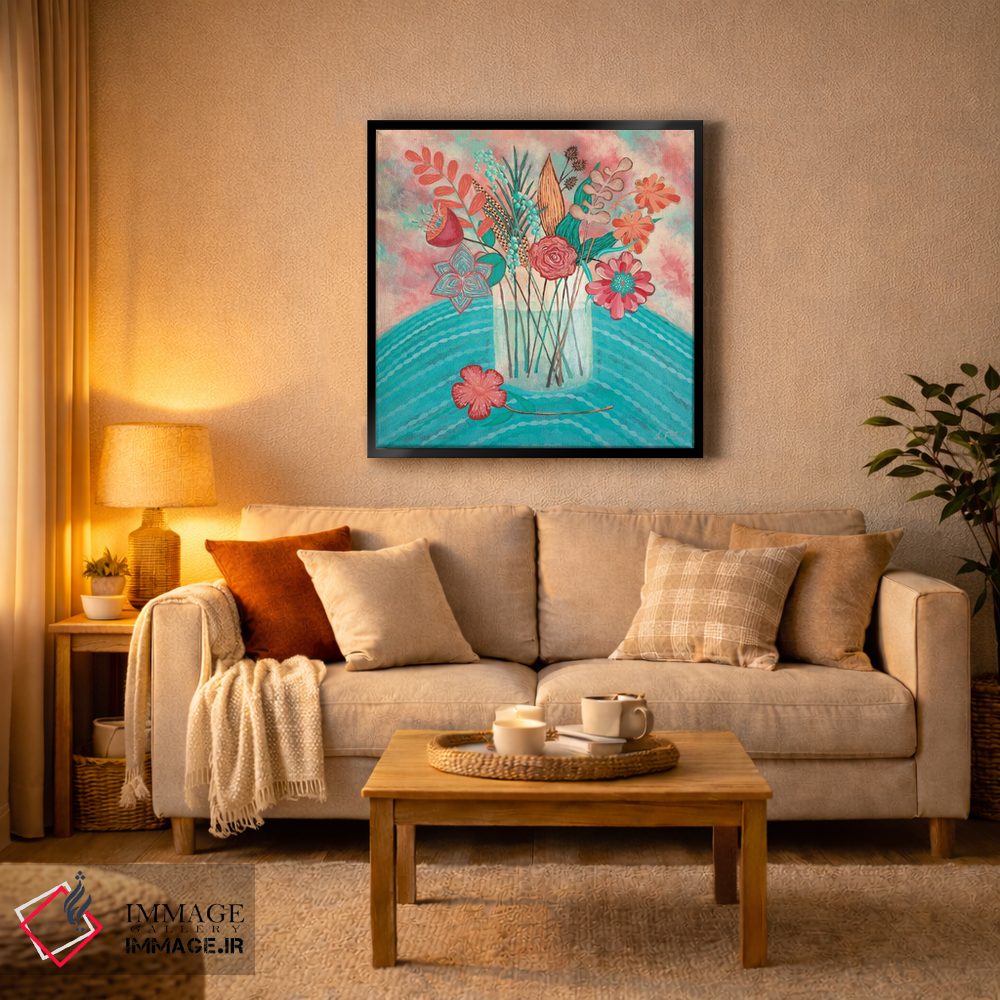 براساس پالت ترکیبی اثر، قاب تیک گرم (چوبی) پیشنهاد اول است و مشکی مات (فریم متوسط) مکمل. برای سفارشهای پروژهای با ابعاد و قابهای اختصاصی با ایماژ در تماس باشید.