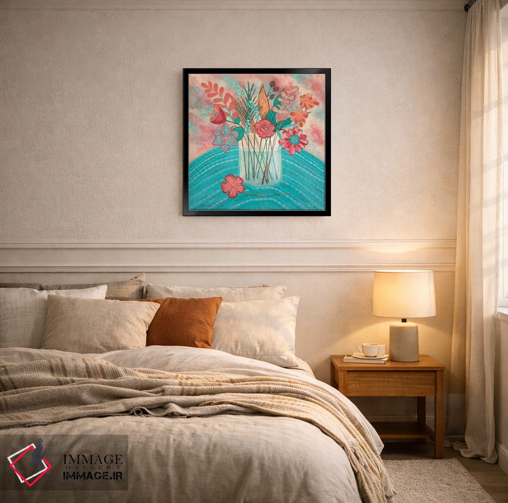 در صورت نیاز، قاب و اندازه را میتوان بر اساس نور و متریال فضا تنظیم کرد. اگر دوست دارید اثر در فضا «هنری و خلاق» دیده شود، نور موضعی ملایم نتیجه را بهتر نشان میدهد و تصمیم را سادهتر میکند.