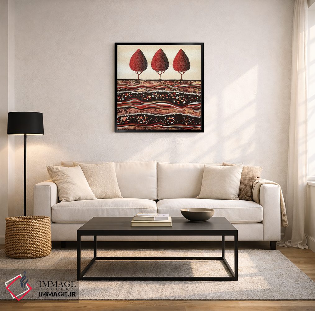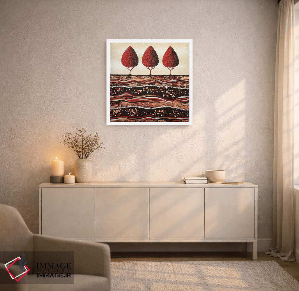 این اثر با عنوان «درختان قرمز» اثرِ «لیزا فرانسیس جاد» به دیوار، روشناییِ ملایم و دلنشین میدهد؛ برای کافهها و فضاهای آرام انتخابی خوشسلیقه است. با قاب روشن یا چوبی، حس طبیعیتری پیدا میکند.