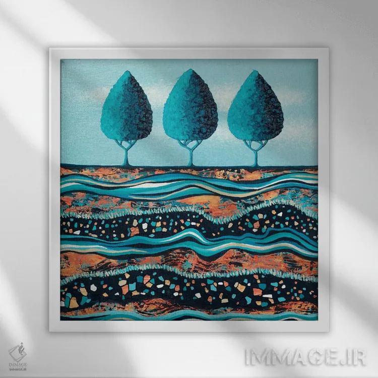 براساس پالت ترکیبی اثر، قاب تیک گرم (چوبی) پیشنهاد اول است و مشکی مات (فریم متوسط) مکمل. برای سفارشهای پروژهای با ابعاد و قابهای اختصاصی با ایماژ در تماس باشید.