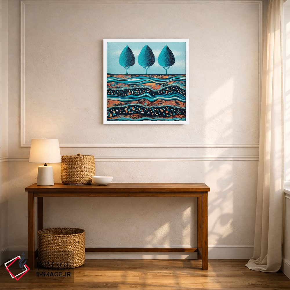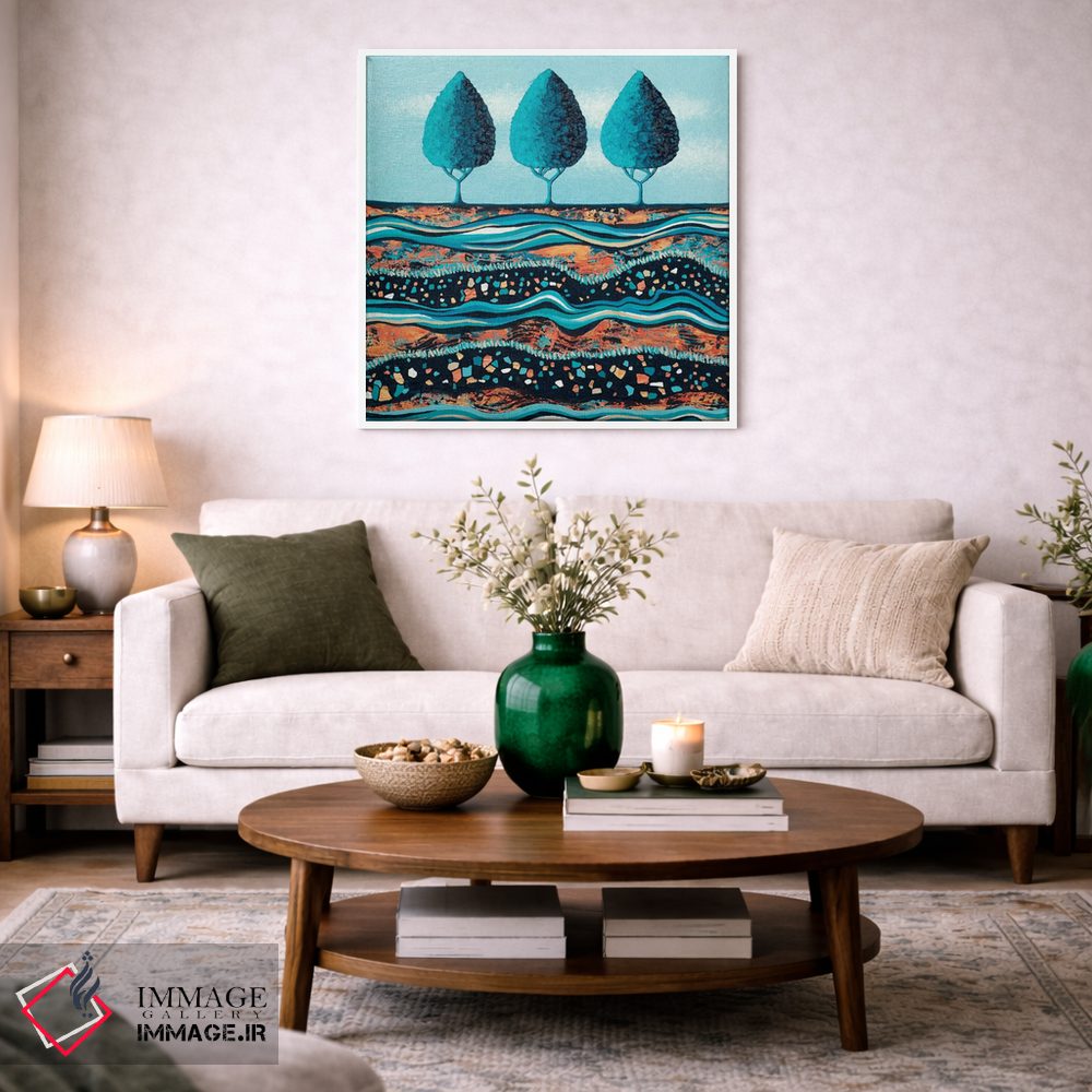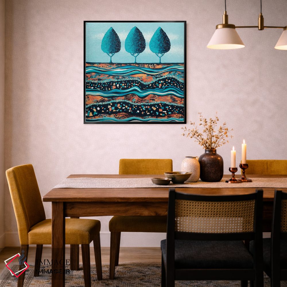 اگر به دکورهای طبیعی علاقه دارید، «درختان به رنگ آب و نور» اثرِ «لیزا فرانسیس جاد» فضا را نرمتر و مهماننوازتر میکند، برای دکورهای اسکانباوراوی گزینهٔ مناسبیست. اگر دنبال «زیباییِ بیصدا» هستید، این اثر همان حس را دارد.