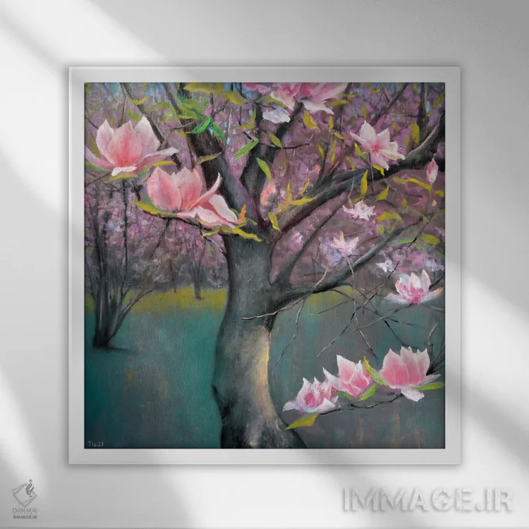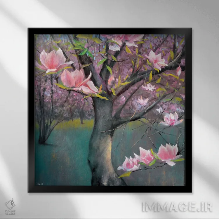 براساس پالت ترکیبی اثر، قاب تیک گرم (چوبی) پیشنهاد اول است و مشکی مات (فریم متوسط) مکمل. برای سفارشهای پروژهای با ابعاد و قابهای اختصاصی با ایماژ در تماس باشید.