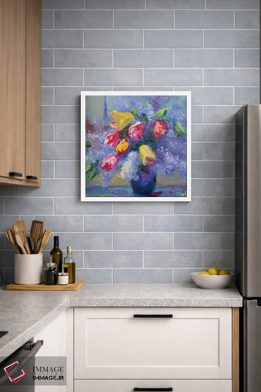 «گلها روی پنجره» اثرِ «النا لوکینا» در کنار مبلمان تیره یا روشن، خوب مینشیند؛ چون تاکیدش روی فرم و کیفیت بصری است.