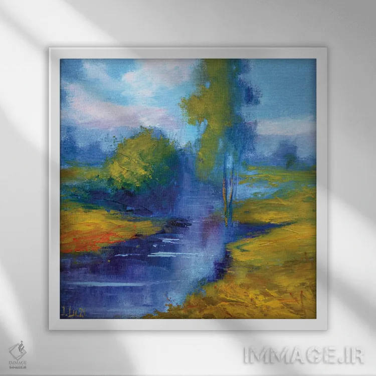 براساس پالت ترکیبی اثر، قاب تیک گرم (چوبی) پیشنهاد اول است و مشکی مات (فریم متوسط) مکمل. برای سفارشهای پروژهای با ابعاد و قابهای اختصاصی با ایماژ در تماس باشید.