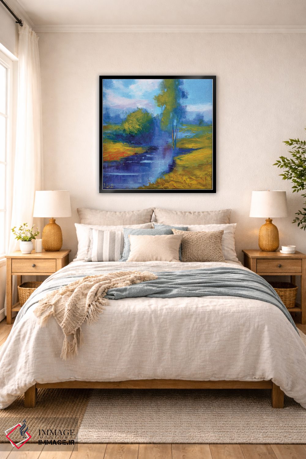 بوم گالری ایماژ نسخهی دکوراتیوِ سطحبالا از یک اثر هنری است؛ روی کنواس سفیدِ یکدست و بدون اسید با چاپ هنری به استاندارد جیکلی (Giclée) با جوهرهای آرشیویِ حرفهای برای لایههای رنگی خواناتر؛ حس نهایی نزدیکتر به ارائهی گالریوار است؛ نه صرفاً یک تصویر. هر تابلو بهصورت سفارشی روی چهارچوب کشیده میشود و با یراق مناسب آمادهی نصب است. امکان انتخاب قاب از گزینههای سایت وجود دارد و برای سفارشهای ویژه هم میتوانید با ایماژ هماهنگ کنید.