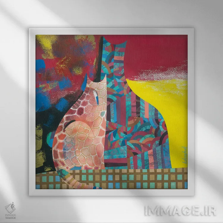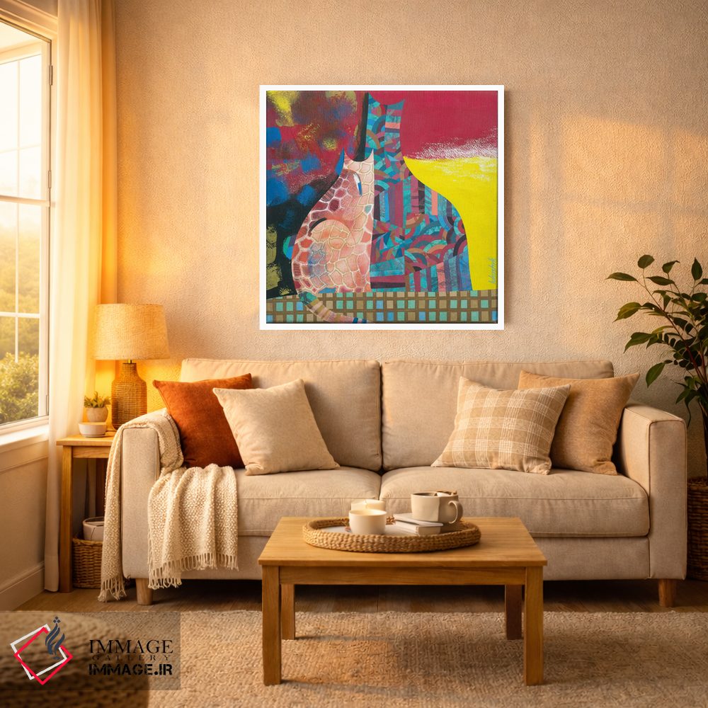براساس پالت ترکیبی اثر، قاب تیک گرم (چوبی) پیشنهاد اول است و مشکی مات (فریم متوسط) مکمل. برای سفارشهای پروژهای با ابعاد و قابهای اختصاصی با ایماژ در تماس باشید.