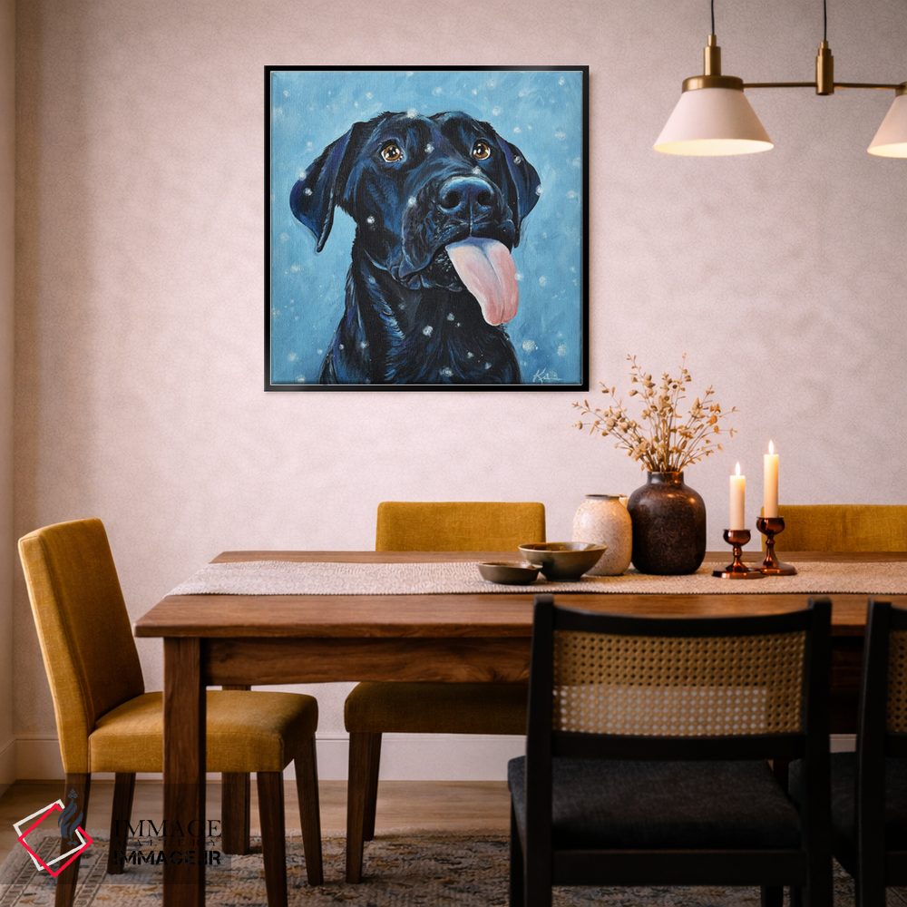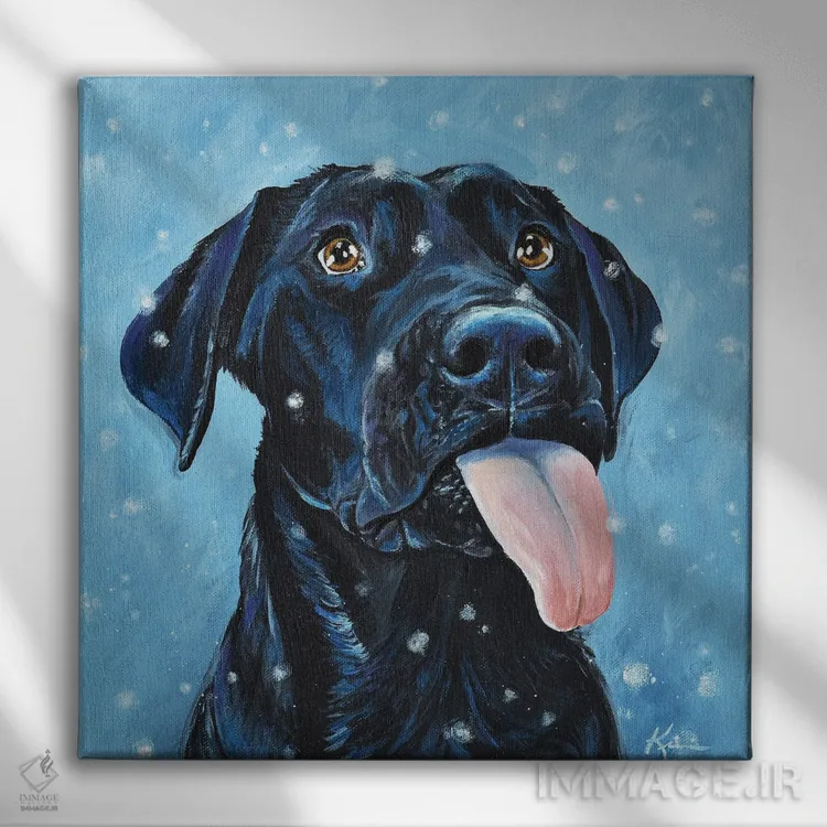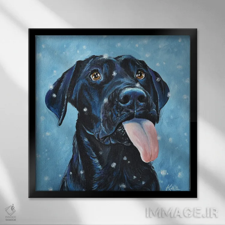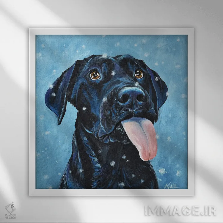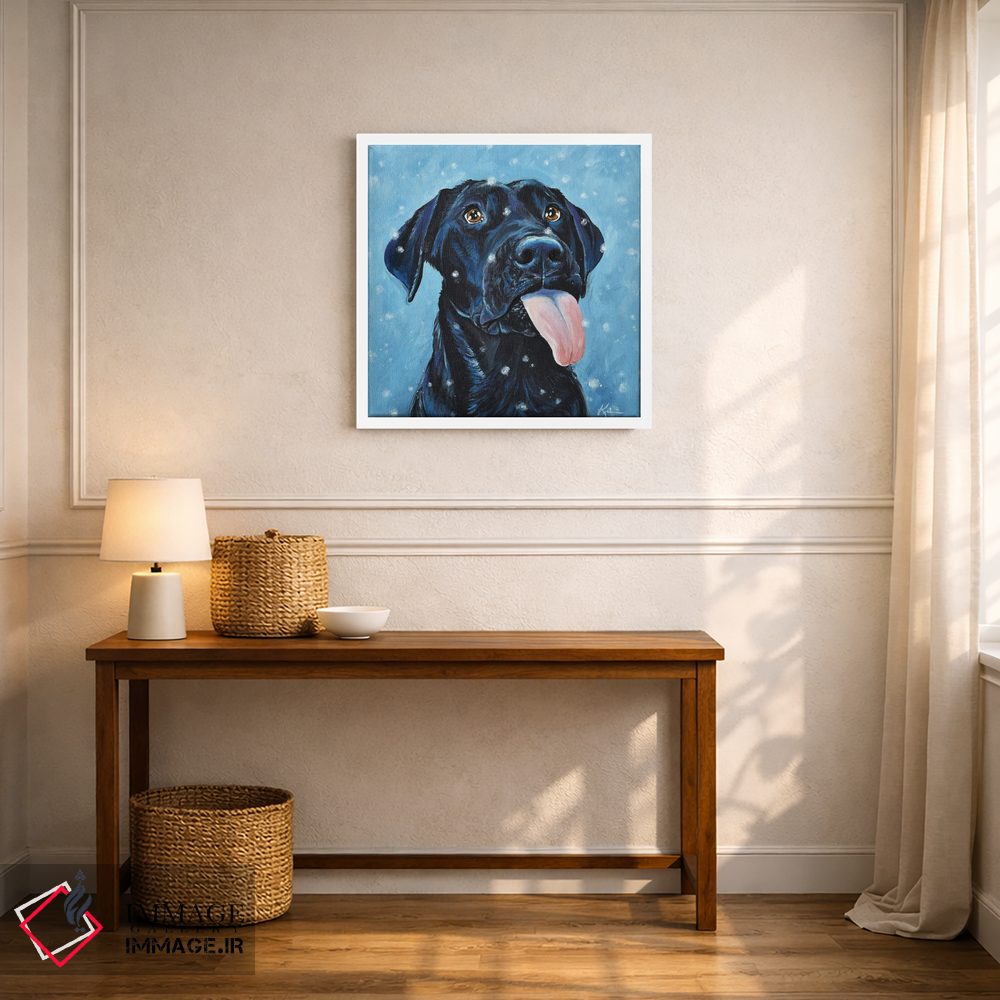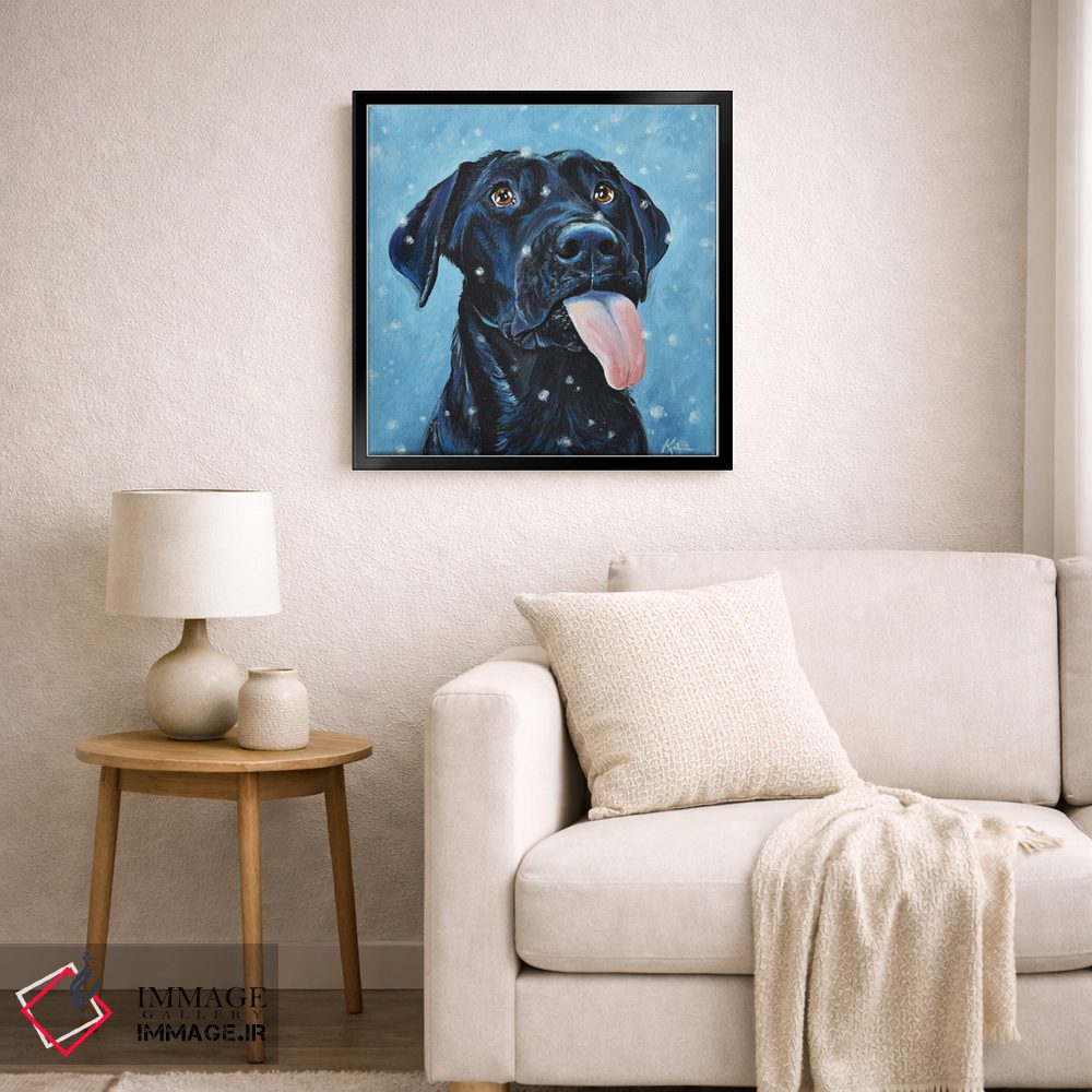 برای دیوارهای ساده، «لابرادور سیاه در حال گرفتن دانههای برف» اثرِ «لینزی کیوی» فضا را صمیمیتر و دعوتکنندهتر نشان میدهد؛ برای کافههای کوچک و صمیمی انتخابی خوشسلیقه است. به دیوار، قصه میدهد—اما قصهای آرام و شیک.