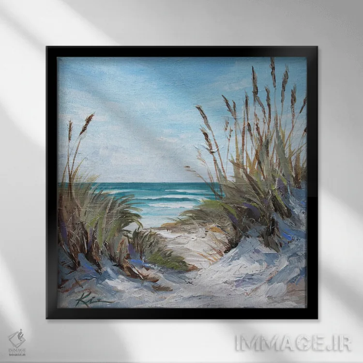 براساس پالت سرد اثر، قاب بلوط روشن (چوبی) پیشنهاد اول است و استخوانی ملایم مکمل. برای سفارشهای پروژهای با ابعاد و قابهای اختصاصی با ایماژ در تماس باشید.