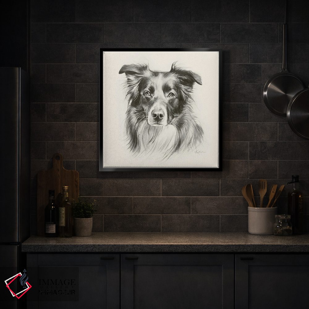برای دیوارهای ساده، «طرح اسکچ سگ شپرد استرالیایی» اثرِ «لینزی کیوی» بافت و جزئیات را طوری نشان میدهد که نگاه میماند؛ برای دیوار کنار میز کار انتخابی خوشسلیقه است. حسش صمیمی است، اما کیفیتش جدی و خوشپرداخت.