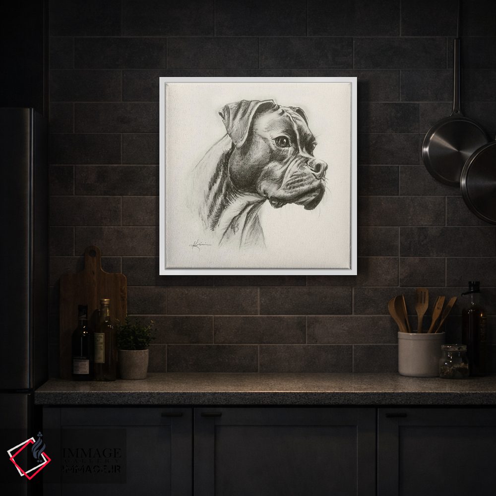 در «طرح اسکچ سگ باکسر» اثرِ «لینزی کیوی»، حضور حیوانات فضا را صمیمیتر و دعوتکنندهتر نشان میدهد؛ برای خانههایی با چوب و پارچههای گرم انتخابی خوشسلیقه است. با قاب چوبی یا مشکی، حس مرتبتری پیدا میکند.