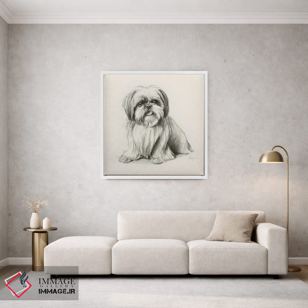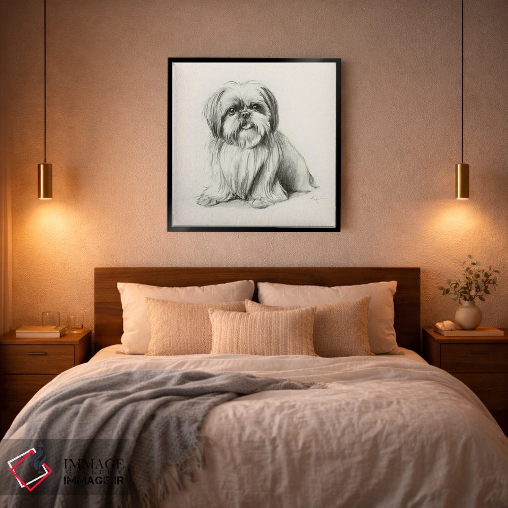 برای اتاقی که به یک عنصر دوستداشتنی نیاز دارد، «طرح اسکچ شیهتزو (سگ)» اثرِ «لینزی کیوی» به دیوار، انرژیِ نرم و زنده میدهد؛ برای فضاهای روستیک یا بوهو انتخابی خوشسلیقه است. به دیوار، قصه میدهد—اما قصهای آرام و شیک.