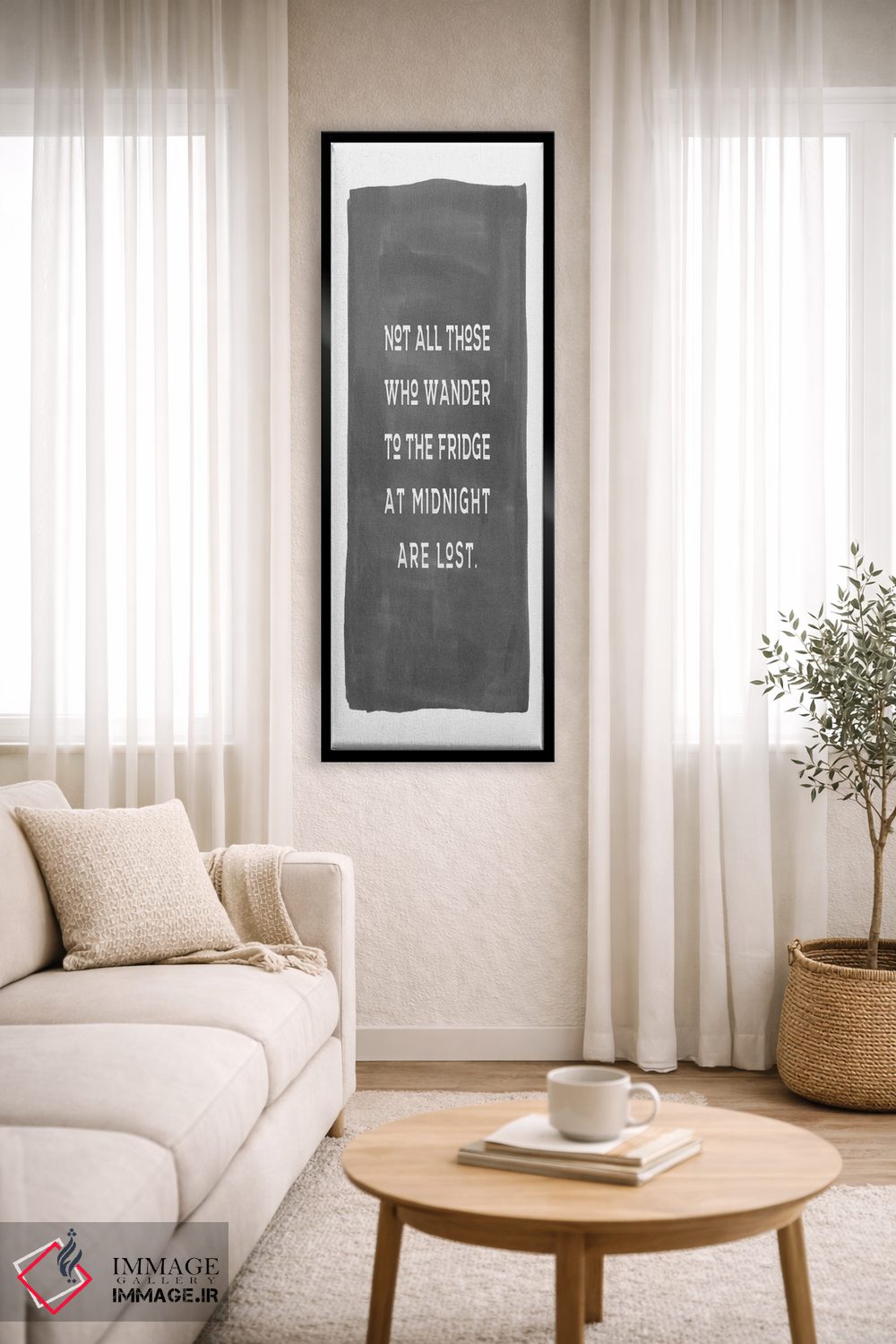 براساس پالت خنثی اثر، قاب مشکی مات (فریم باریک) پیشنهاد اول است و سفید مات (فریم باریک) مکمل. برای سفارشهای پروژهای با ابعاد و قابهای اختصاصی با ایماژ در تماس باشید.