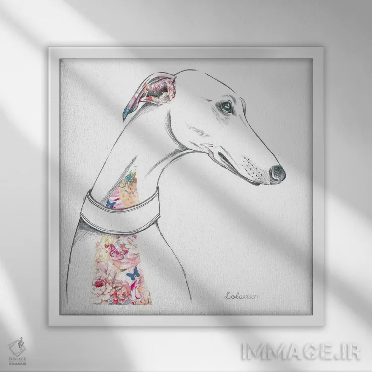 تابلو دکوراتیو پرتره سگ گری هوند اثر لولا دیزاین - نمای قاب‌دار سفید