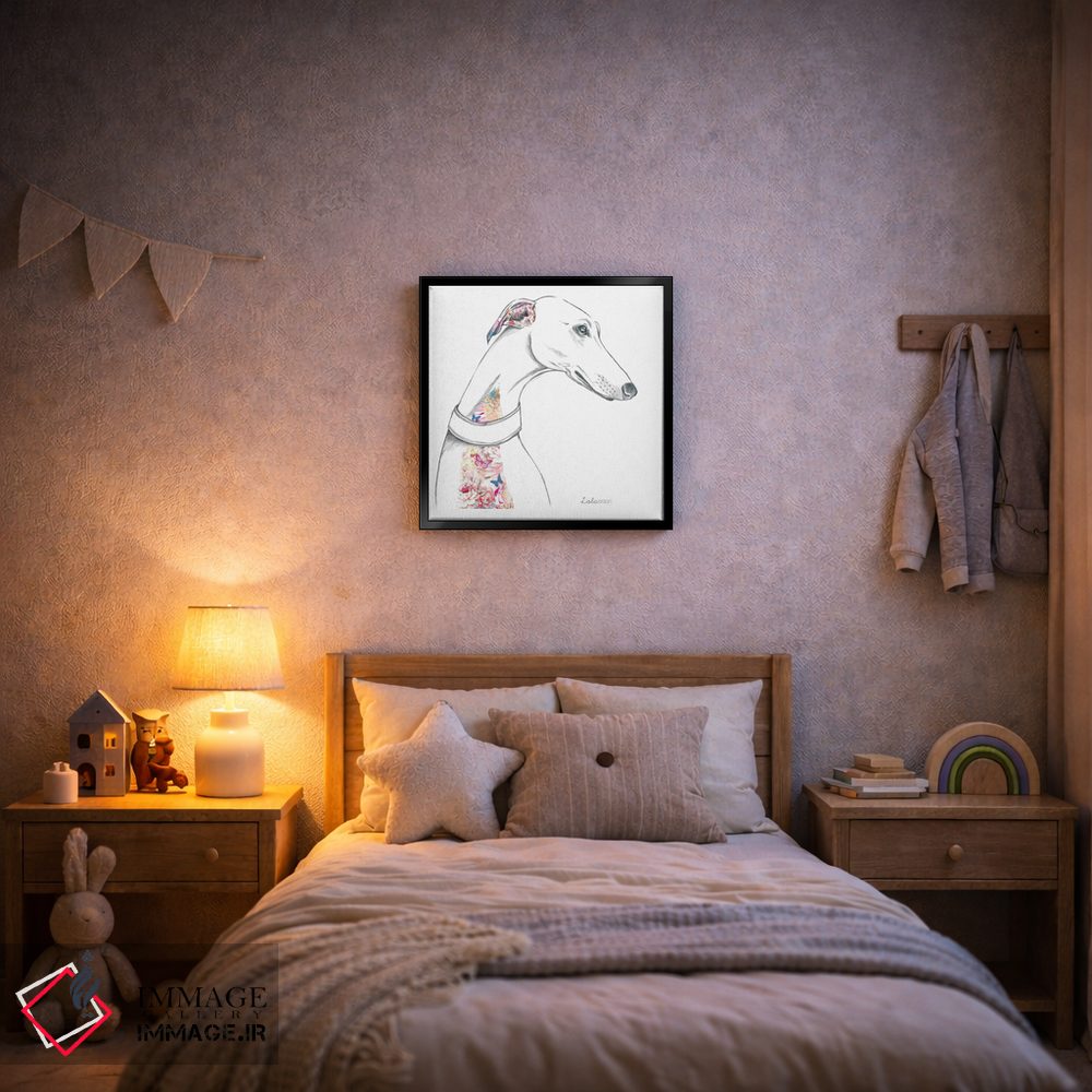 تابلو دکوراتیو پرتره سگ گری هوند اثر لولا دیزاین - نمای روبه‌رو روی دیوار