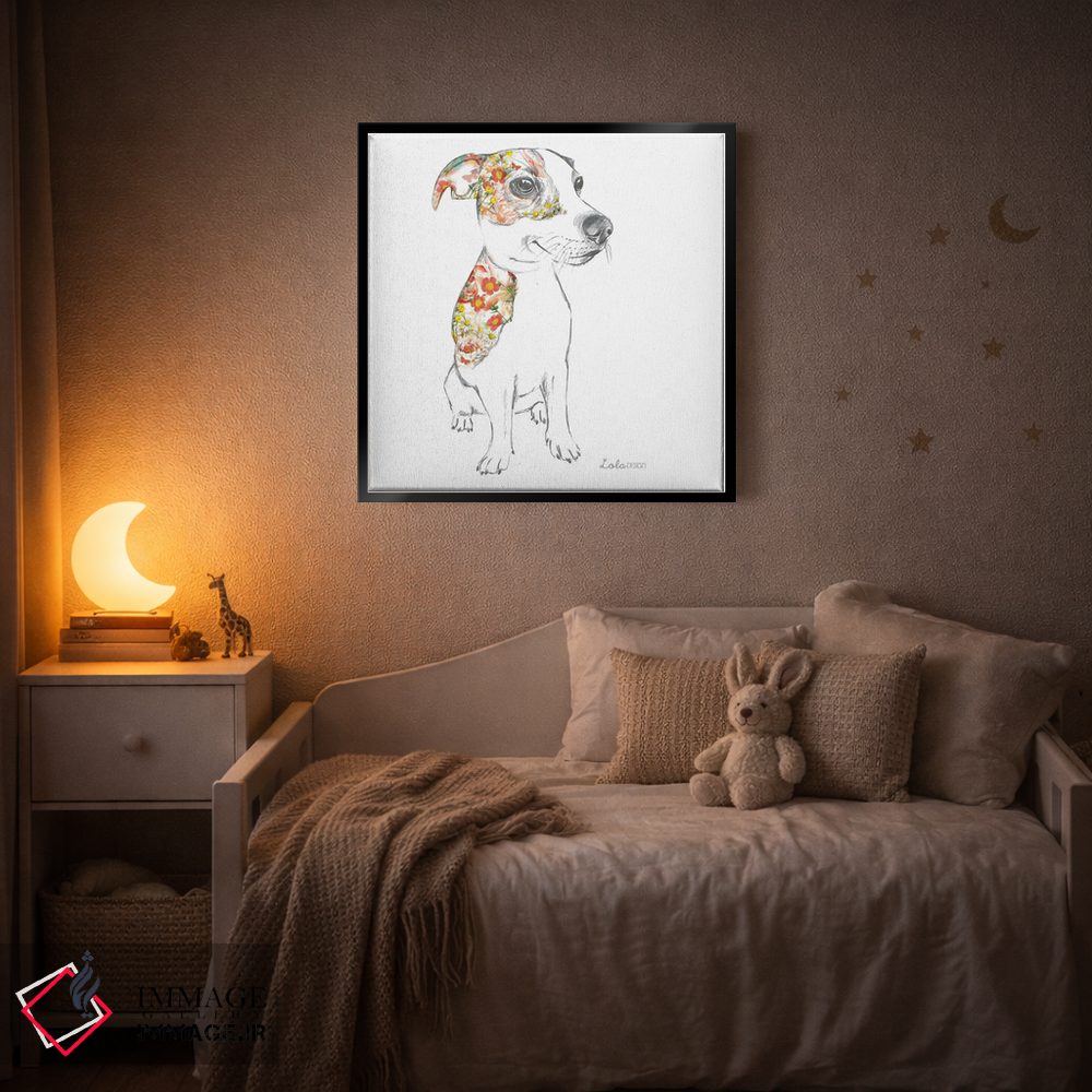 برای اتاقی که به یک عنصر دوستداشتنی نیاز دارد، «پرتره سگ جک راسل» اثرِ «لولا دیزاین (استودیو طراحی)» در کنار رنگهای خنثی، تضاد دلچسبی میسازد؛ برای دکورهایی با رنگهای خنثی انتخابی خوشسلیقه است. هم فضا را گرم میکند، هم شلوغش نمیکند.
