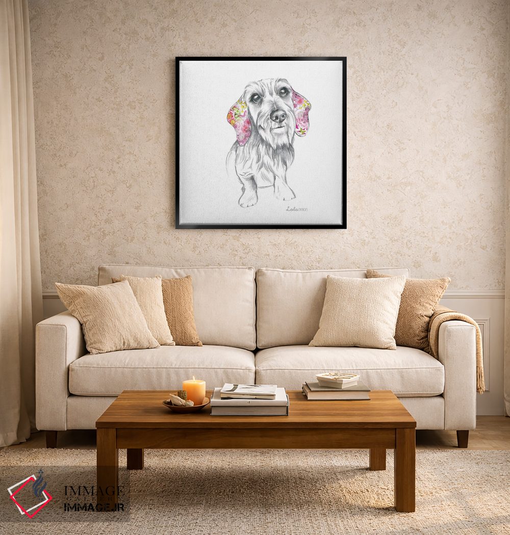 تابلو دکوراتیو پرتره سگ داشهوند مو سیمی اثر لولا دیزاین