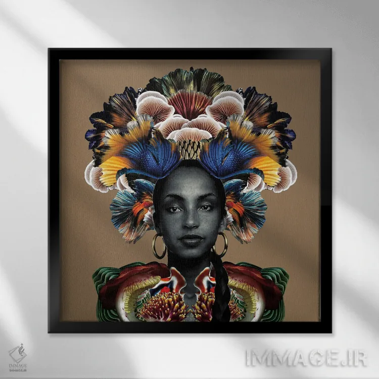 براساس پالت ترکیبی اثر، قاب تیک گرم (چوبی) پیشنهاد اول است و مشکی مات (فریم متوسط) مکمل.