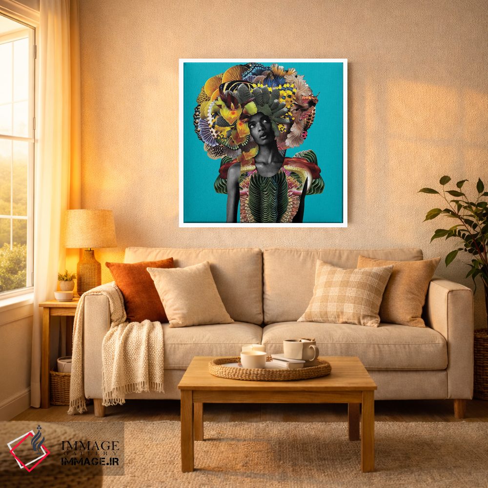 براساس پالت ترکیبی اثر، قاب تیک گرم (چوبی) پیشنهاد اول است و مشکی مات (فریم متوسط) مکمل. برای سفارشهای پروژهای با ابعاد و قابهای اختصاصی با ایماژ در تماس باشید.