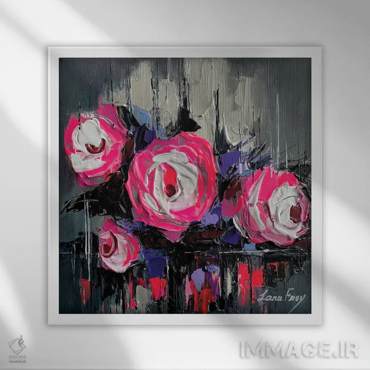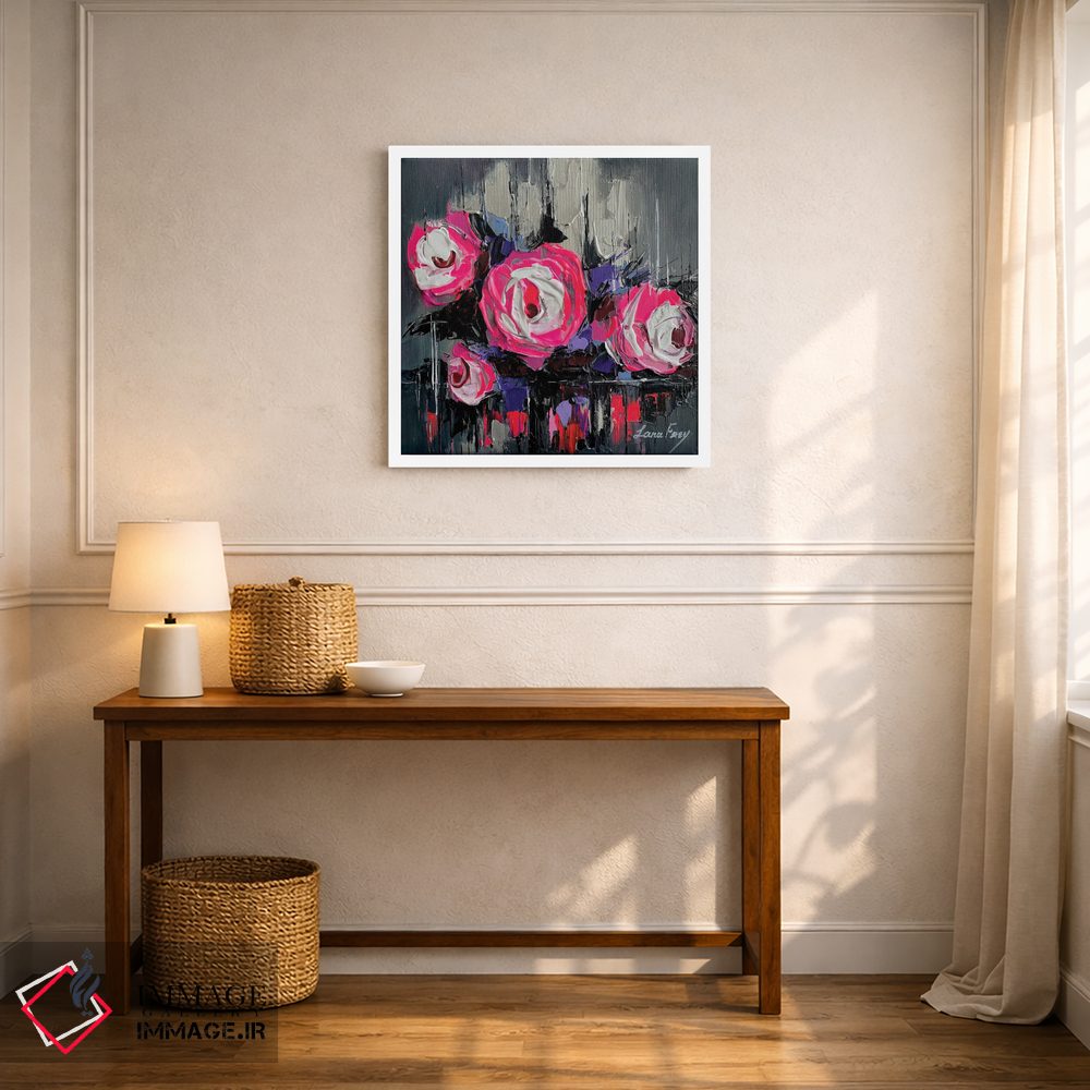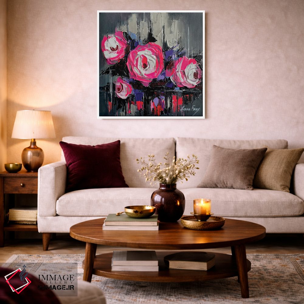 براساس پالت ترکیبی اثر، قاب تیک گرم (چوبی) پیشنهاد اول است و مشکی مات (فریم متوسط) مکمل. برای سفارشهای پروژهای با ابعاد و قابهای اختصاصی با ایماژ در تماس باشید.