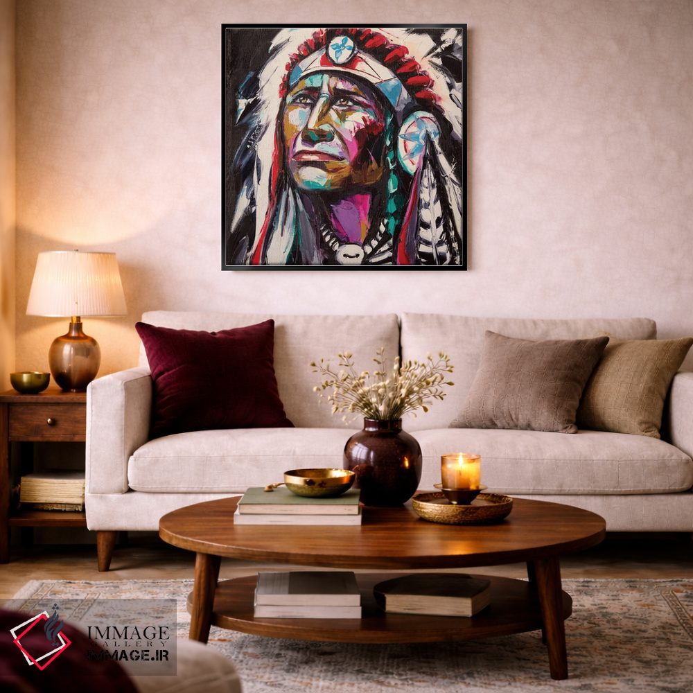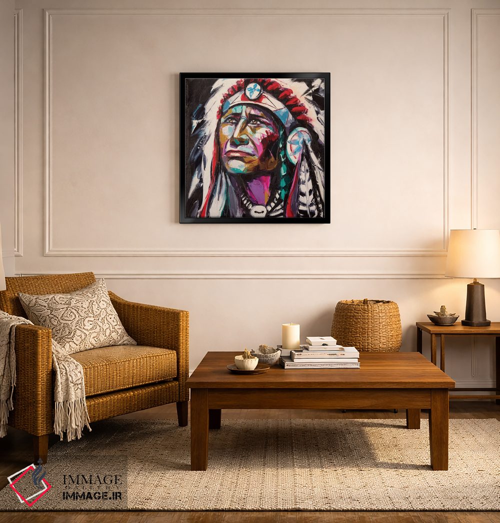 براساس پالت ترکیبی اثر، قاب تیک گرم (چوبی) پیشنهاد اول است و مشکی مات (فریم متوسط) مکمل. برای سفارشهای پروژهای با ابعاد و قابهای اختصاصی با ایماژ در تماس باشید.