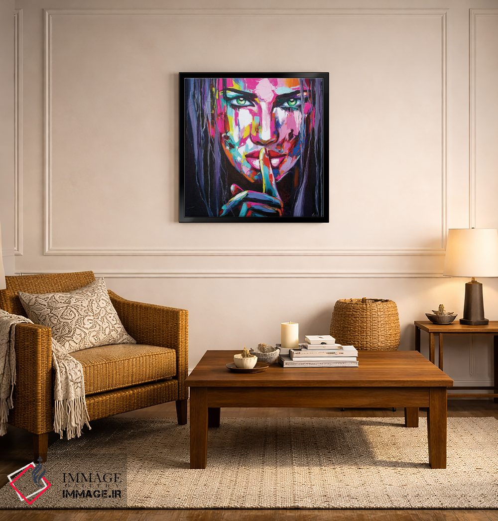 براساس پالت ترکیبی اثر، قاب تیک گرم (چوبی) پیشنهاد اول است و مشکی مات (فریم متوسط) مکمل. برای سفارشهای پروژهای با ابعاد و قابهای اختصاصی با ایماژ در تماس باشید.