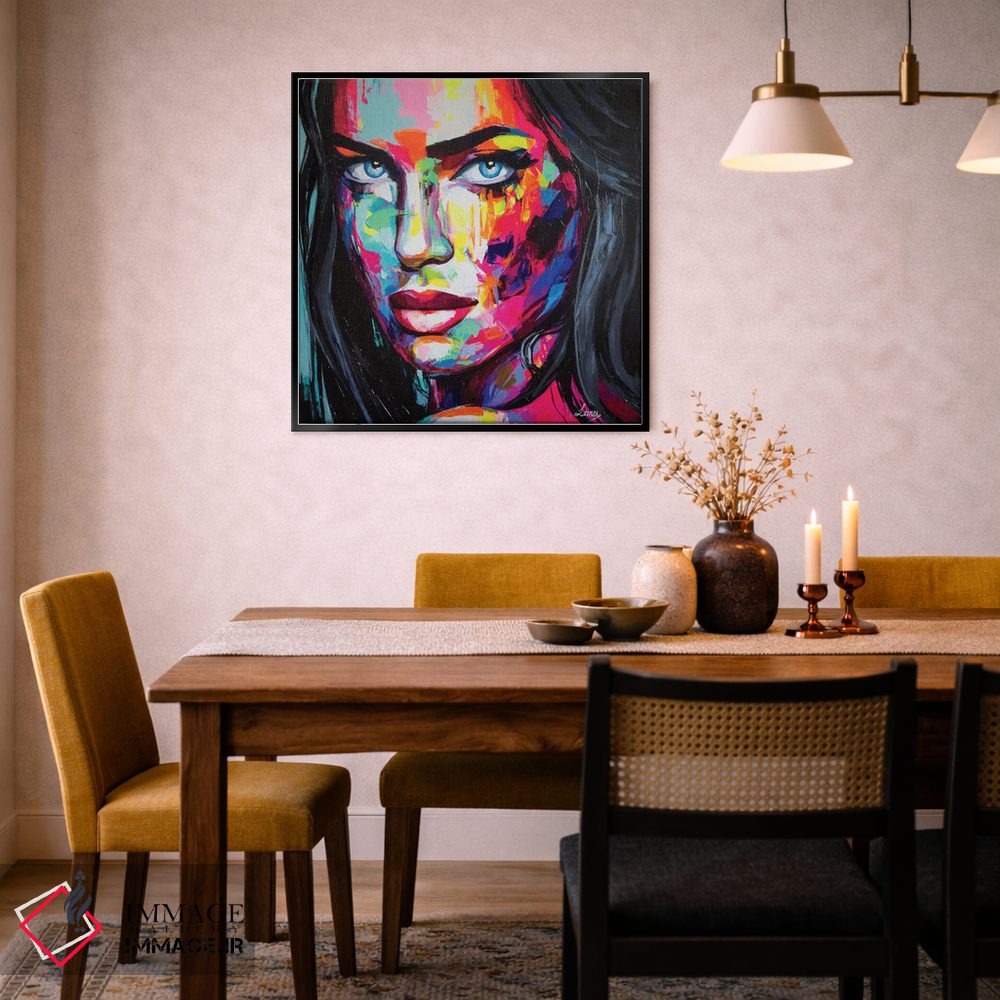 ساختار بوم گالری ایماژ طوری است که اثر روی دیوار «پرداختشده» و حرفهای دیده شود—نه پرزرقوبرقِ بیپایه؛ بلکه دقیق و خوشپرداخت. بافت ظریف کنواس کمک میکند حس اثر هنری را در نگاه نزدیک نگه میدارد بهخصوص وقتی نور موضعی ملایم داشته باشید. ارائهی آماده نصب باعث میشود اثر را مرتب و یکدست روی دیوار مینشاند و در چیدمانهای مدرن و کمینهگرا خیلی خوب مینشیند. حاصل کار، یک تابلو خوشنشین است که هم از دور اثرگذار است و هم از نزدیک خوشخوان؛ در کنار نورپردازی درست، جلوهی گالریوار بیشتری حس میشود. برای فضاهای کوچک، انتخاب قاب ساده و یک نور موضعی ملایم نتیجه را حرفهایتر میکند.