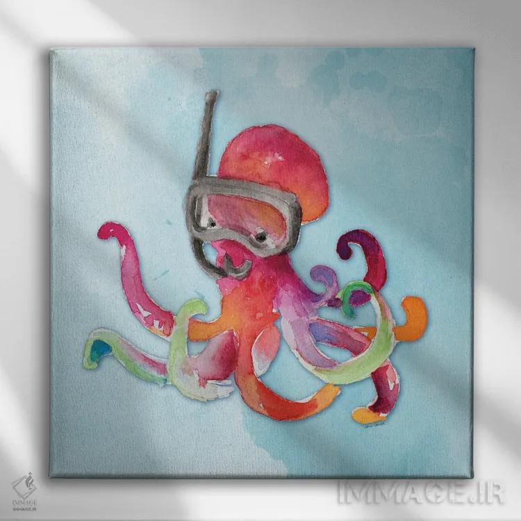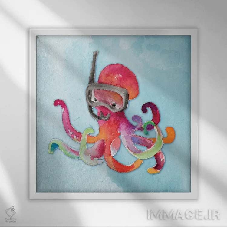 تابلو دکوراتیو "هشت پا در حال غواصی روی آبرنگ" اثر لینی لورث