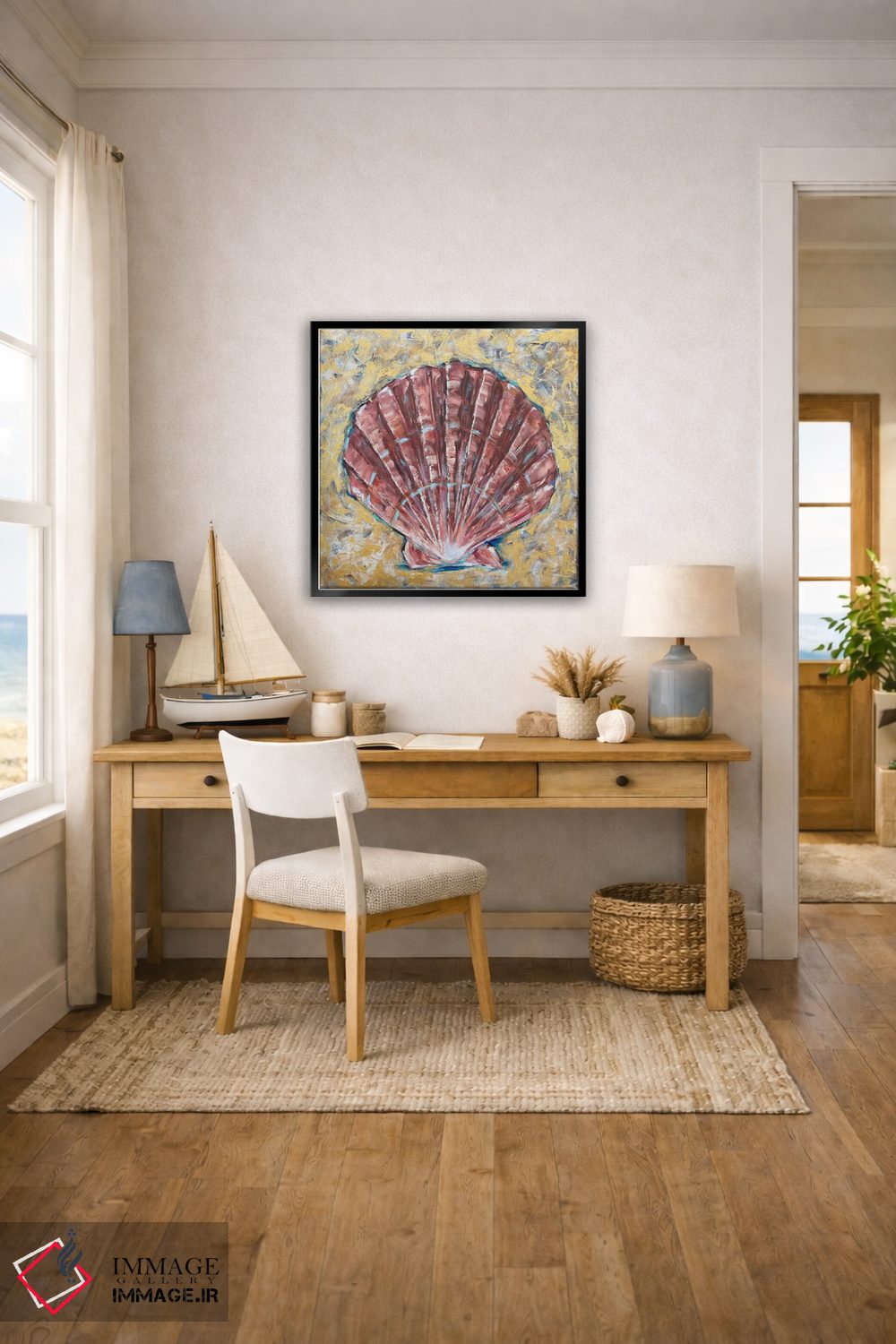 «"طلای صدف"» اثرِ «لیندا اولسن» یک قاب سبک و روشن است؛ موضوعِ این اثر در حالوهوای ساحلی به فضا حسِ باز بودن میدهد.
