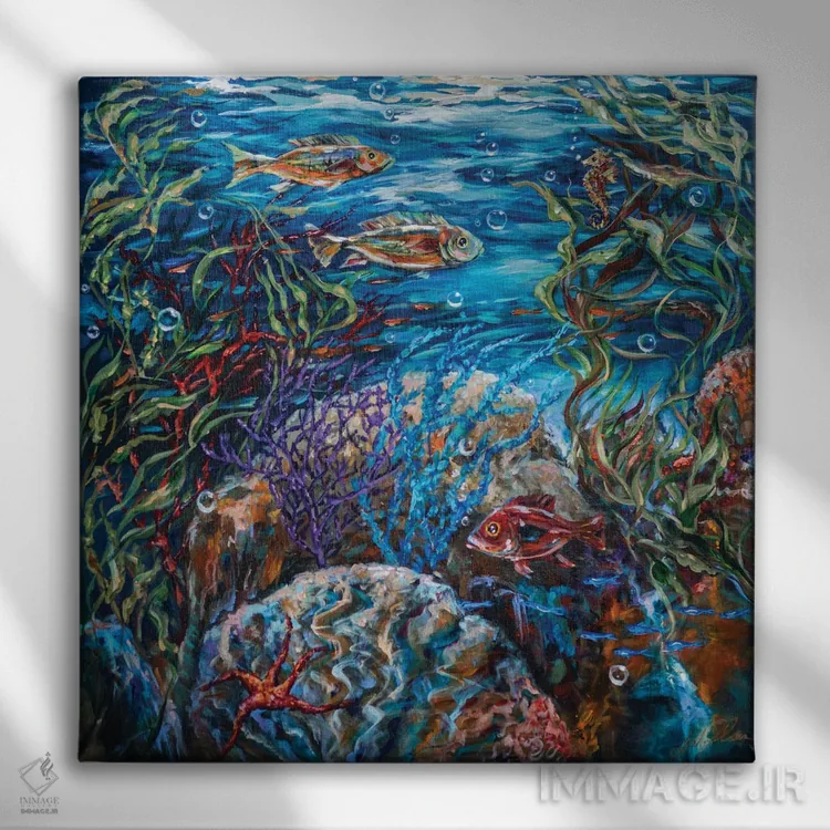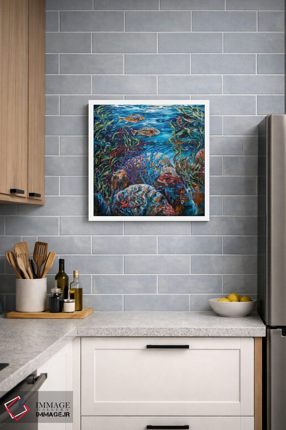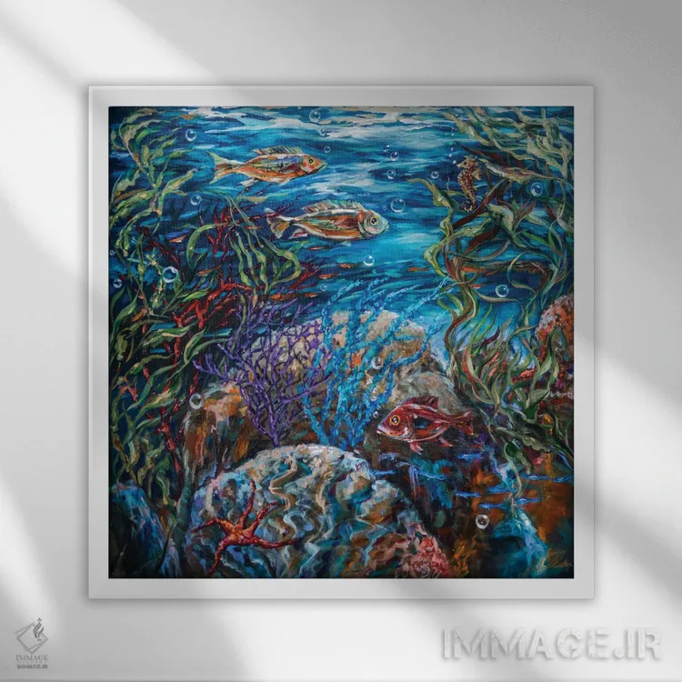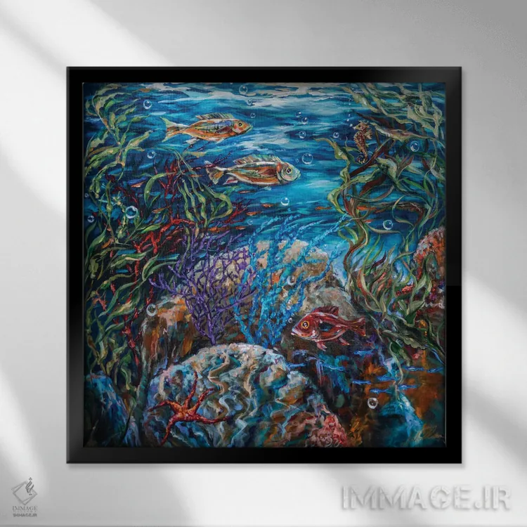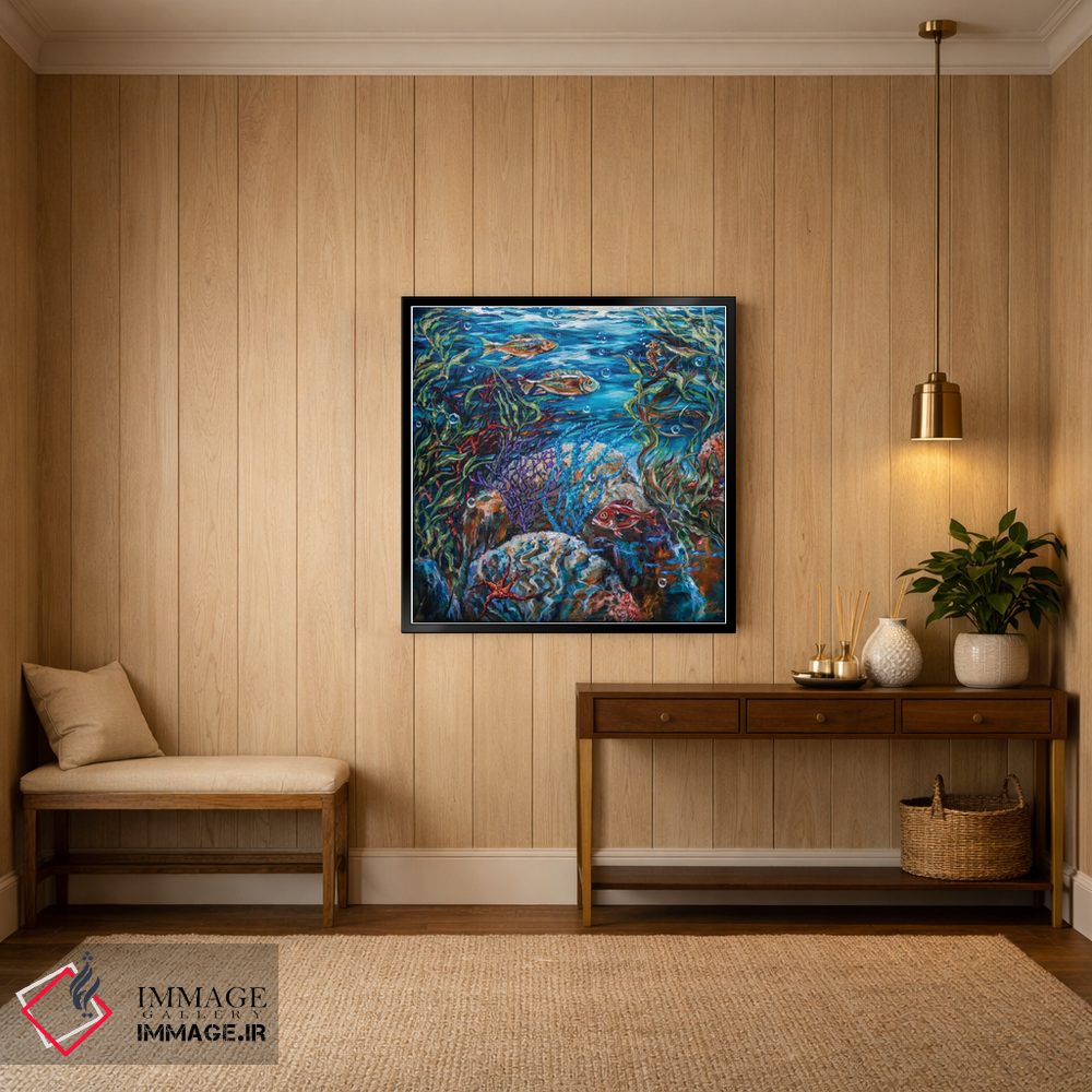 براساس پالت ترکیبی اثر، قاب تیک گرم (چوبی) پیشنهاد اول است و مشکی مات (فریم متوسط) مکمل. برای سفارشهای پروژهای با ابعاد و قابهای اختصاصی با ایماژ در تماس باشید.